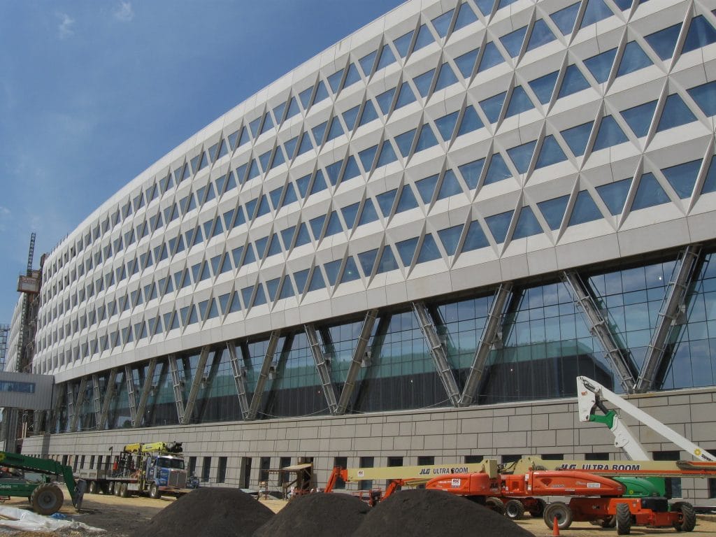 As one of the largest U.S. government facilities in the Washington, DC area, New Campus East consolidates six agency locations as part of the Defense Base Realignment and Closure program. The new campus includes a 2.2 million sq ft, eight-story office building for 8,500 workers, a 105,000 sq ft central utility plant, a 5,100-space parking garage, and a 7,300 sq ft visitor control center. Working with the joint venture of Clark/Balfour Beatty, SGH consulted on the building enclosure design and construction.