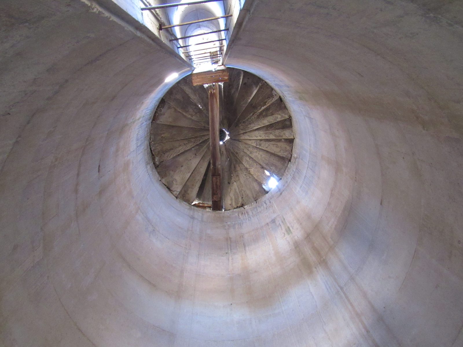 SGH visited the site to investigate the condition of the cylindrical silo, which is approximately 12 ft in diameter and 40 ft tall. We determined the silo walls were generally in good condition, but the deteriorated roof permitted water infiltration and certain appurtenances (e.g., metal access ladder, concrete vent stack, and wood trim pieces) were also damaged. We also researched historical construction methods to better understand the silo’s design and inform our recommendations.