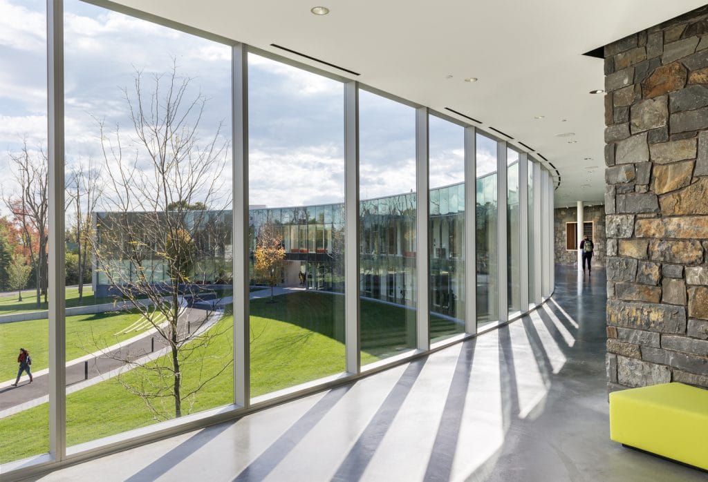 SGH assisted with the selection of the building enclosure systems that include precast wall panels, stone masonry, glass curtain wall, roofing, and below-grade waterproofing. One of the major design elements is a curved curtain wall that opens to the rest of campus and faces north to allow light into the building without significant solar gain.