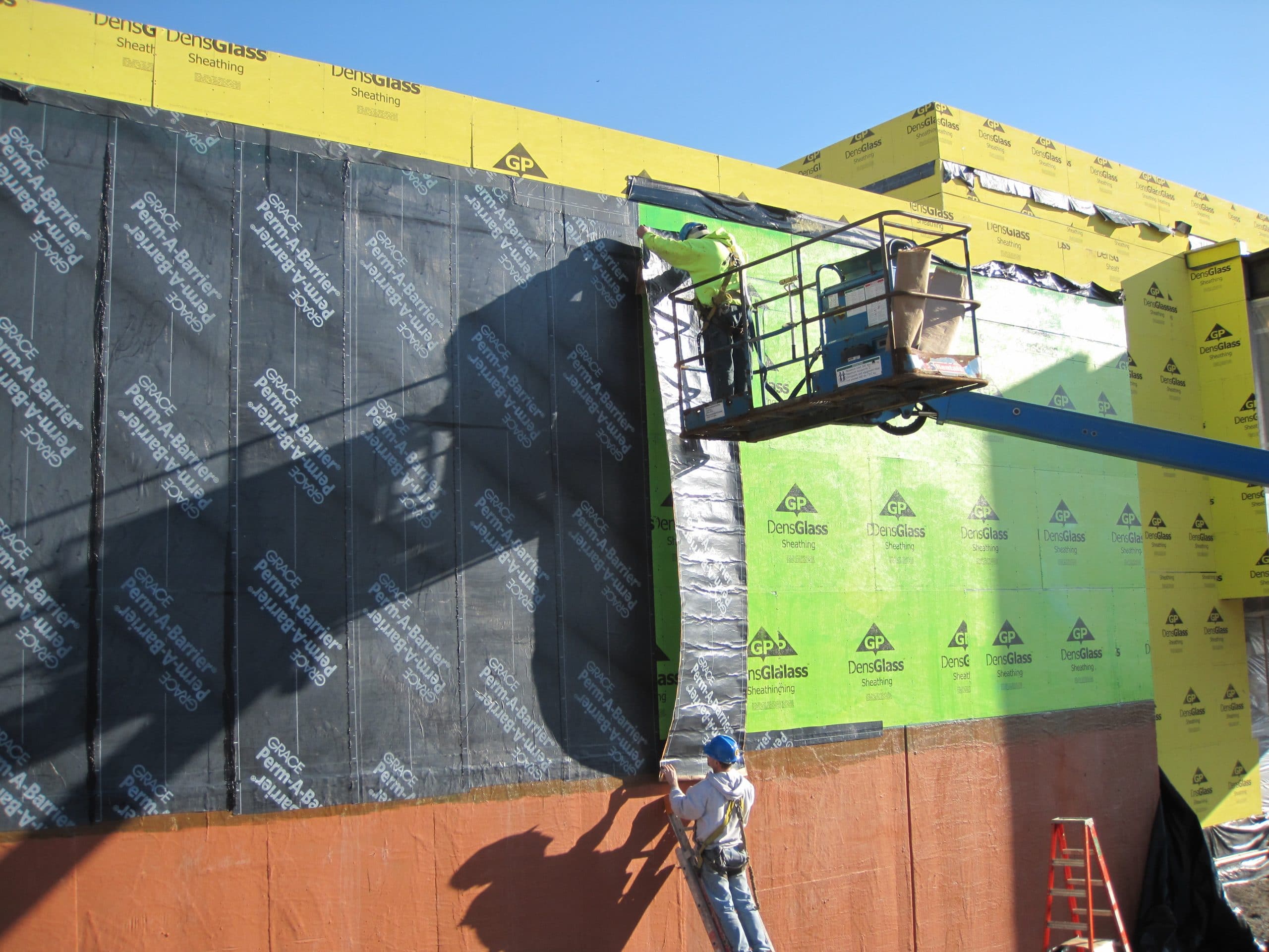 During the construction process, we reviewed submittals, observed construction during periodic site visits, and conducted performance testing to verify that building enclosure construction was consistent with the design intent.  SGH conducted testing that included localized air and water testing of the fenestrations, air leakage testing of selected exterior wall components, and whole building air leakage testing.  Our testing program helped the project team identify deficiencies in systems integration, which allowed for timely corrections during construction, and demonstrated to Hamilton College that they were receiving a quality air barrier with air leakage less than one-third the amount of the industry recognized standard of 0.4 cfm/sf and less than half the U.S. Army Corps of Engineer’s 0.25 cfm/sf requirement.