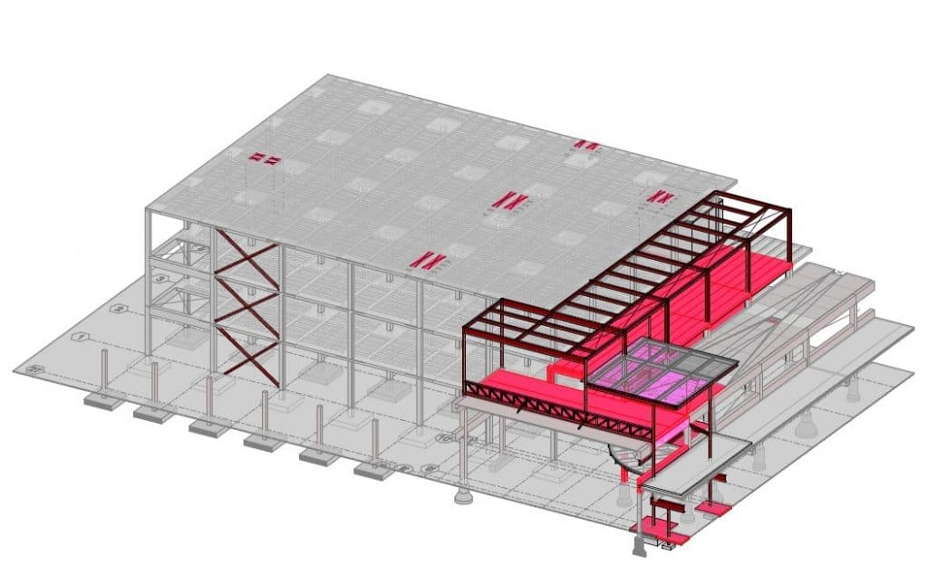 SGH investigated the existing structure, originally a two-way, cast-in-place concrete pan-joist floor system supported by concrete columns that was expanded with multiple precast concrete additions constructed in the 1970s and 1980s. We documented the existing configuration, collected information about the embedded reinforcement, and performed laboratory testing on extracted concrete cores to determine strength and material properties.