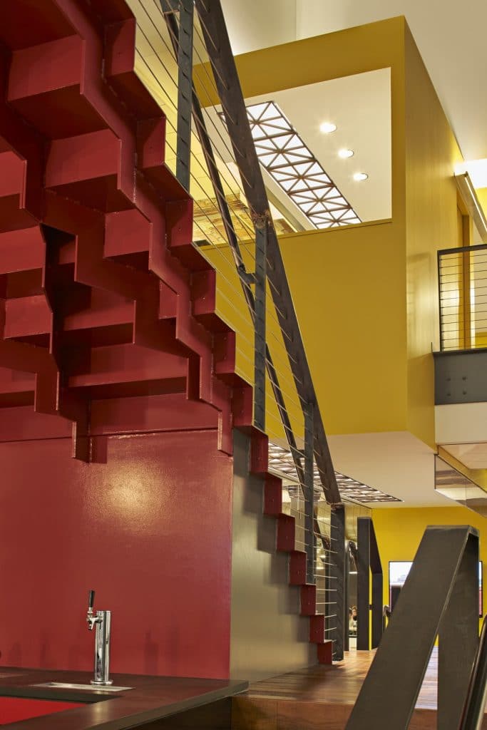 • Unique signature staircase with saw-tooth plates that branch out in a fractal pattern as the stair widens