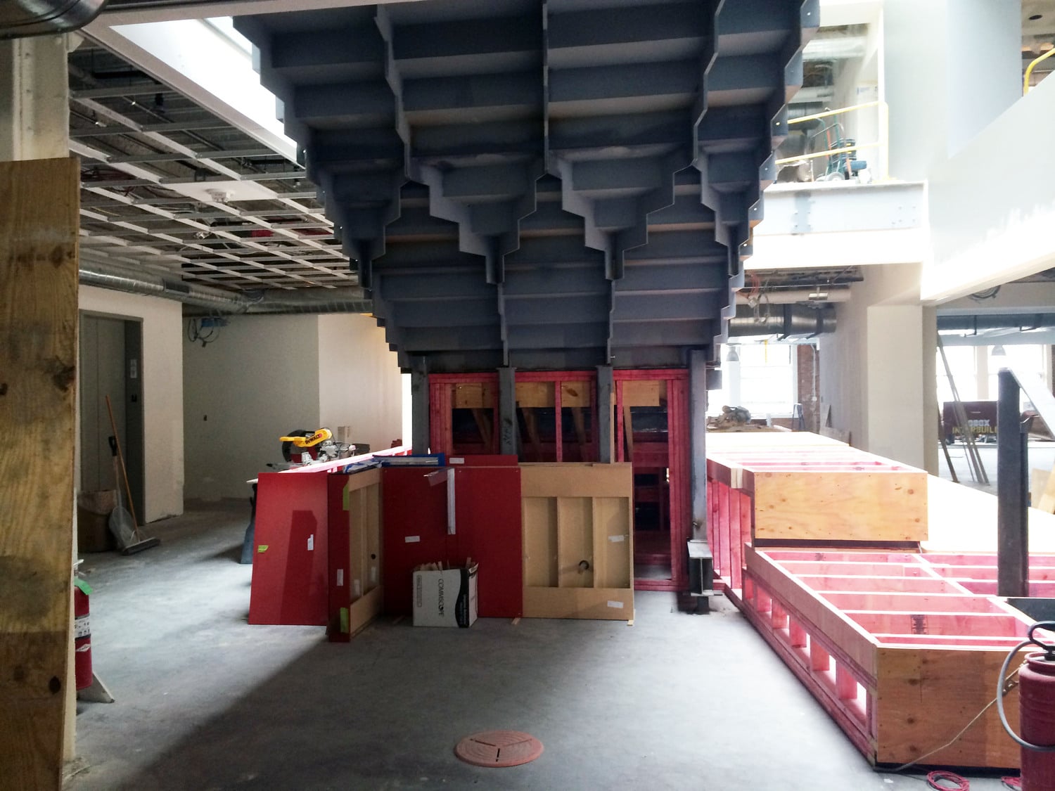 • Hidden steel work for supporting massive architectural garage doors in the main gathering space