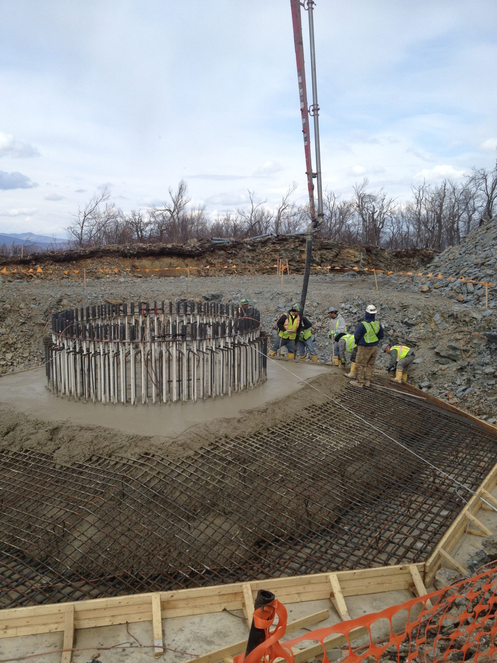 The Hoosac Wind Project is located in the mountains of Western Massachusetts. The project includes nineteen 1.5 MW wind turbines consisting of a steel tower supported by 45 ft dia. reinforced-concrete mat foundations. During construction, the contractor identified issues with understrength concrete and retained SGH to investigate the problems, identify solutions, and assist with dispute resolution.