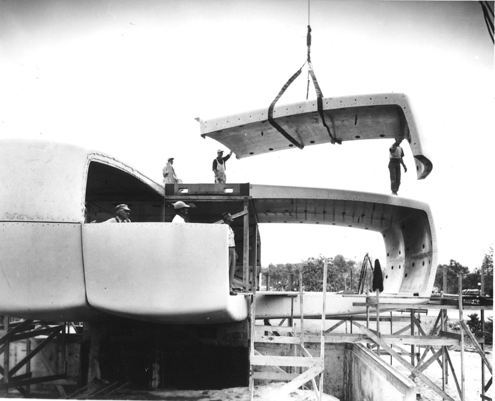 In 1954, the Monsanto Chemical Company provided funding to Massachusetts Institute of Technology’s Plastics Research Laboratory to develop a futuristic house made of plastics. One goal was to demonstrate that a modular, cost-effective, and modern house could be made almost entirely of plastics. A related goal was to change the role of plastics in construction from that of an inexpensive, substitute material to that of a high-quality, engineered material. SGH was the structural engineer for the House of the Future, which  featured four symmetric wings cantilevered off a central core.