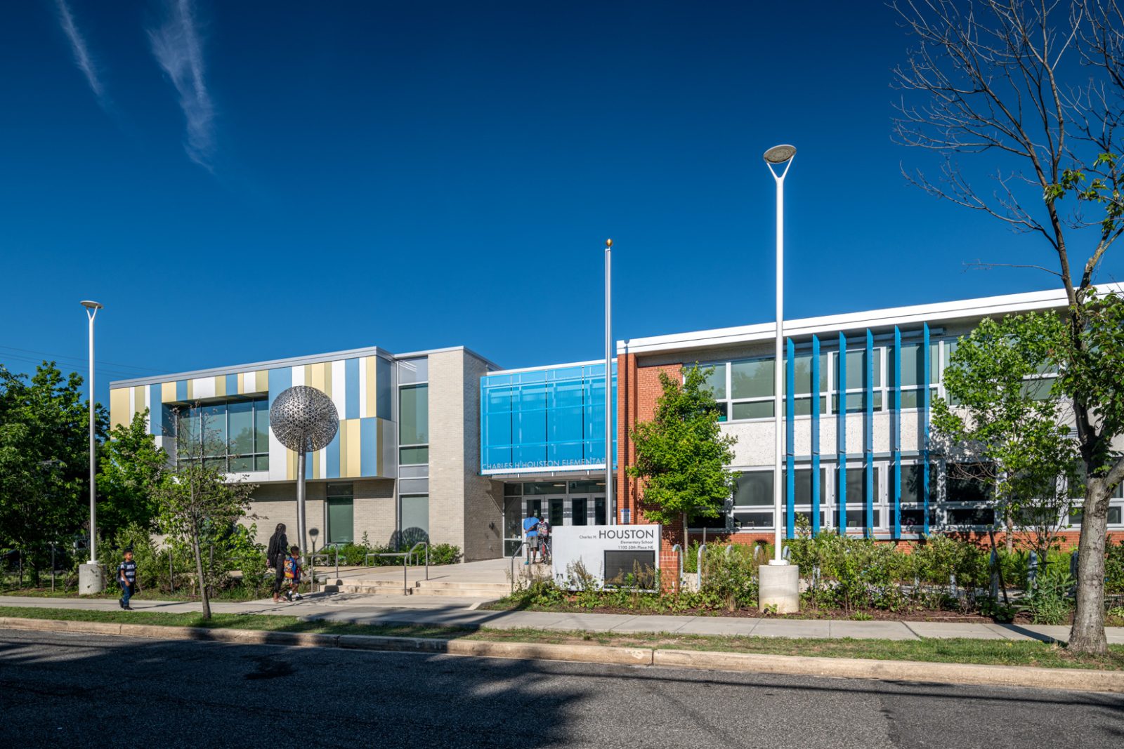 The District of Columbia Public Schools needed to modernize and expand Charles H. Houston Elementary School. The project included renovating existing spaces and constructing a new addition. By moving corridors to exterior walls, the design team was able to bring natural light into circulation areas. SGH consulted on the enclosure, including new and existing systems.