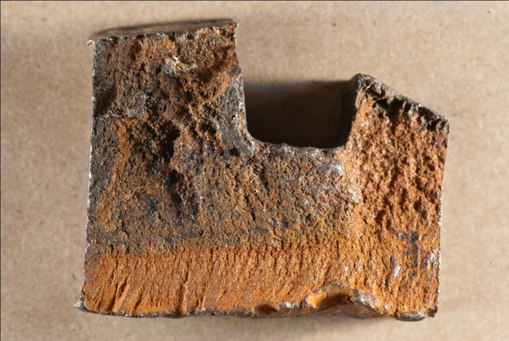 We concluded the fracture was initiated by impact during construction operations and internal pressures caused the initial fracture to propagate to final rupture.