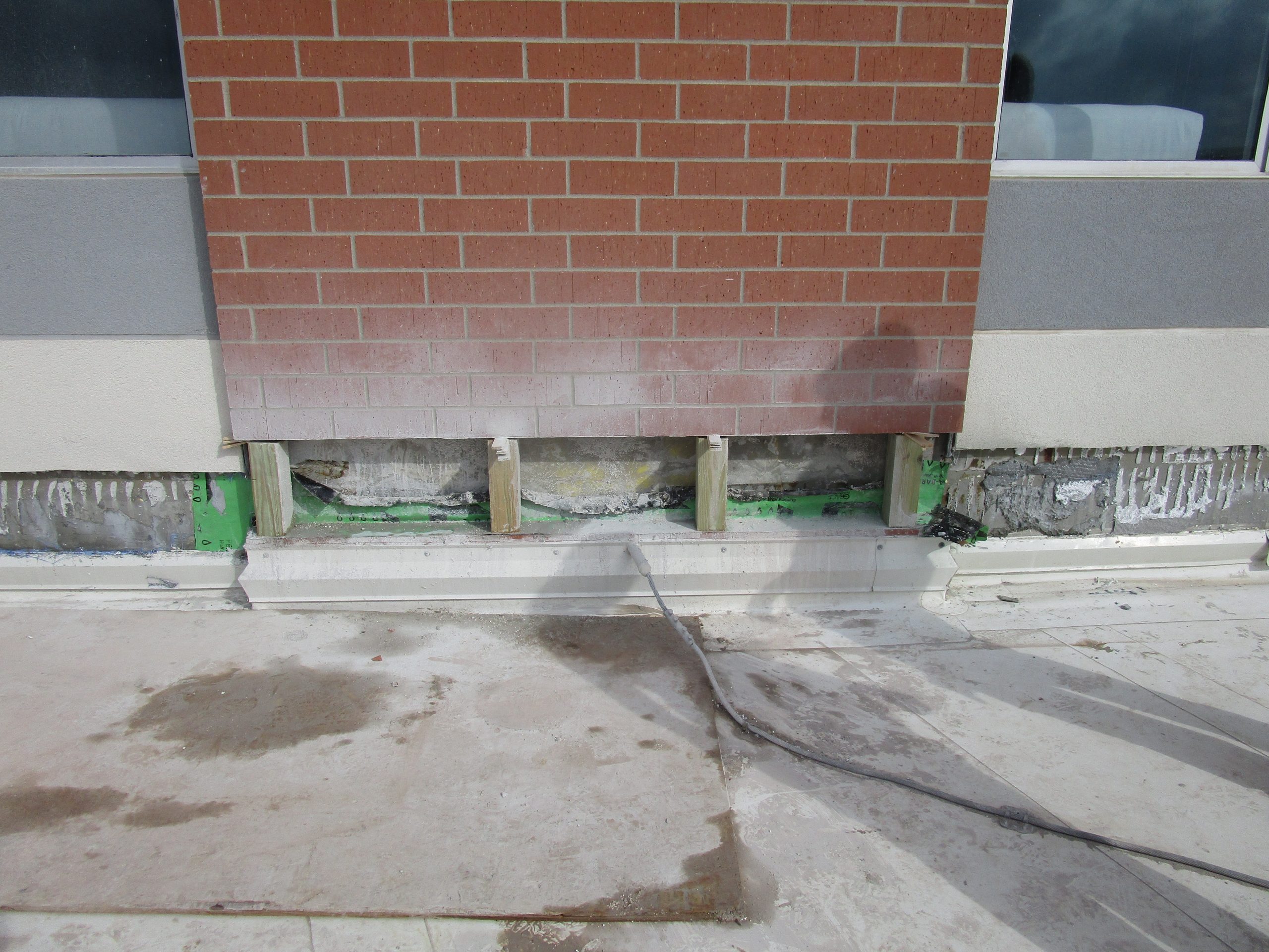 - Adding through-wall flashing at the roof line and where a low roof meets a rising wall