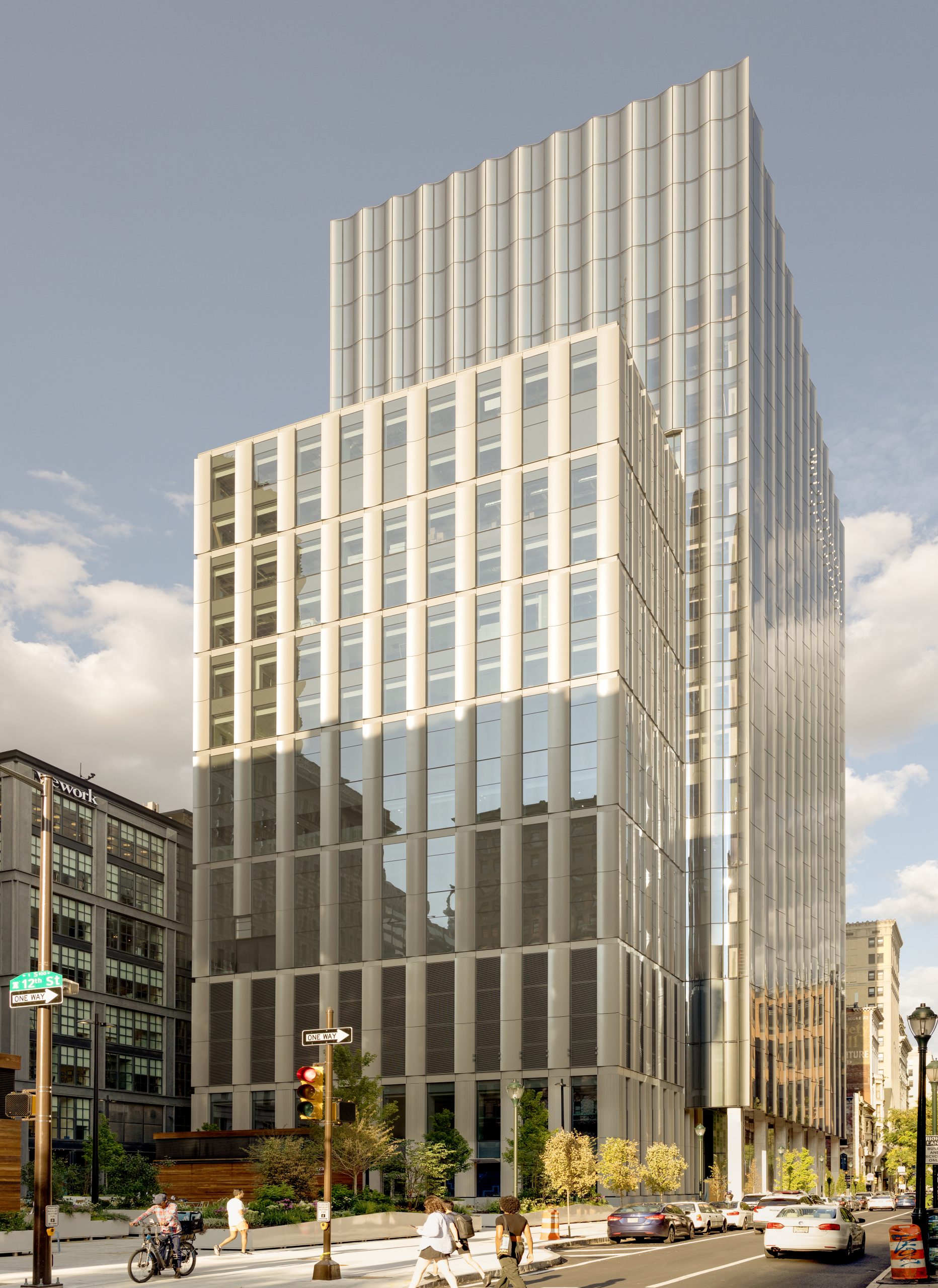 Located in the East Market development in downtown Philadelphia, the nineteen-story building at 1101 Chestnut Street houses the Specialty Care Pavilion for Jefferson Health. The facility includes more than three hundred exam rooms, fifty-eight infusion chairs, ten operating rooms, six endoscopy rooms, imaging and laboratory services, a pharmacy, and three levels of below-grade parking. SGH consulted on the building enclosure design for the project, including the custom pleated curved glass curtain wall facade, and as-built conditions for the foundation mat slab.