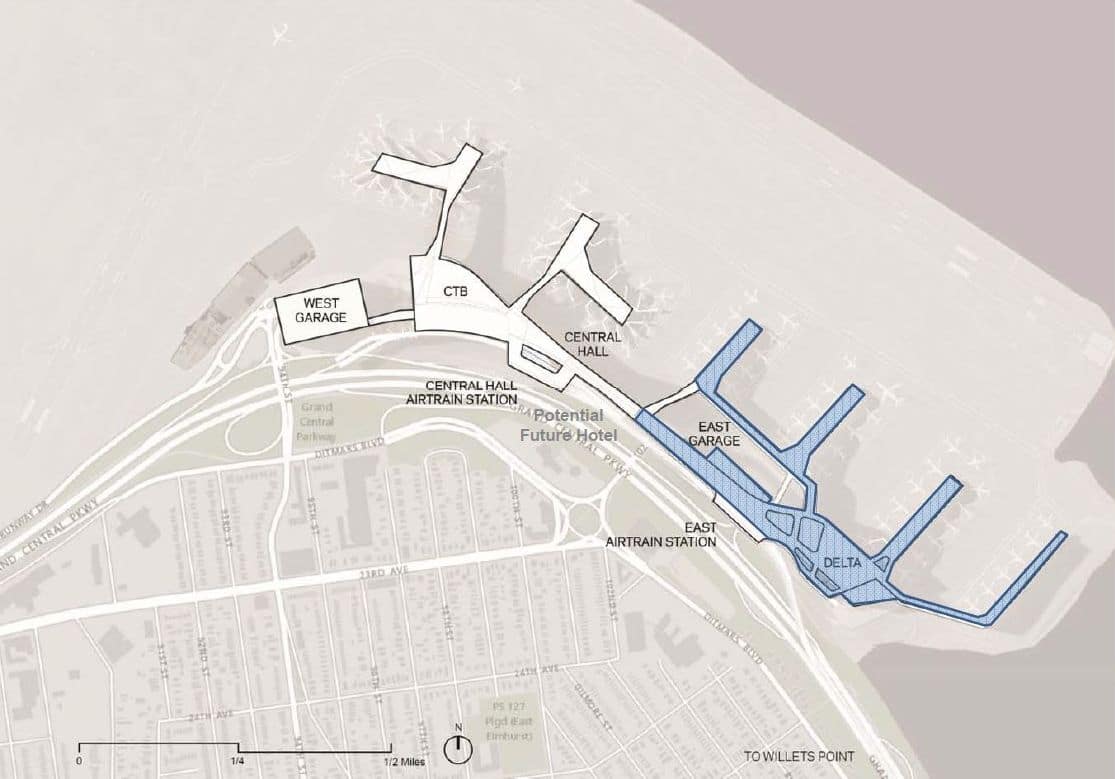 LaGuardia Airport and Delta Airlines determined Terminals C and D had exceeded their useful life and were undersized for future needs. They planned to demolish the terminals and replace them with a new 37-gate terminal, comprising a common headhouse with four concourses and a canopy structure connecting to the Central Terminal Building. SGH consulted on the building enclosure for the new terminal, featuring glass curtain wall and metal wall panels.