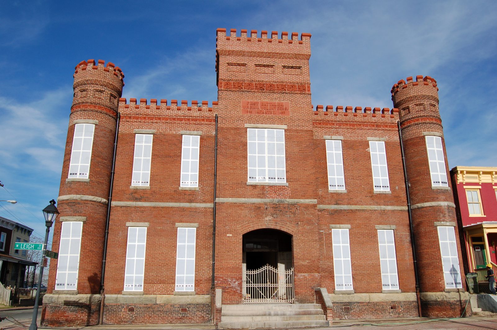 Built circa 1895 and listed on the state and national registers, the First Virginia Volunteers Battalion Armory, also known as the Leigh Street Armory, is the oldest armory building standing in Virginia. It has significant cultural heritage as one of the only existing armories built for an African-American military battalion. The armory suffered severe damage from fire, years of neglect, exposure to the elements, and vandalism. The armory received a grant under the U.S. Department of the Interior Save America’s Treasures Program and the City of Richmond wanted to stabilize the building and prevent further deterioration of the surviving elements while they evaluated various options for building.