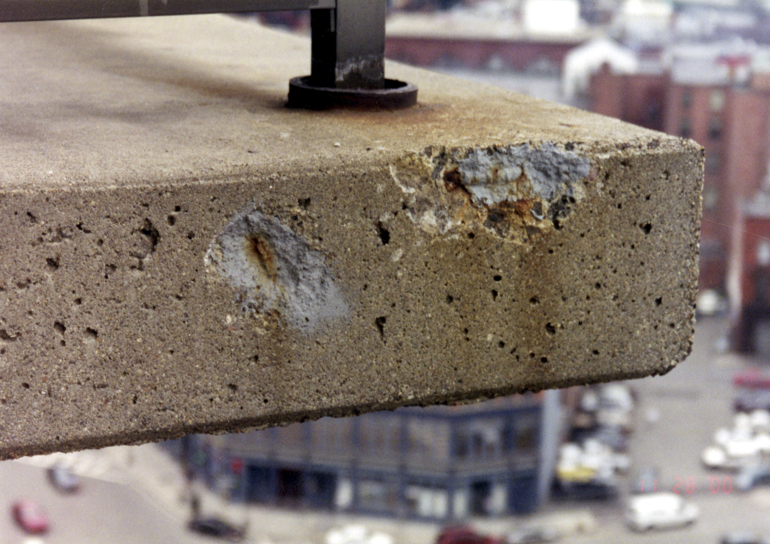 • Examine the condition of steel reinforcement, balcony railing attachments, and existing sealant joints