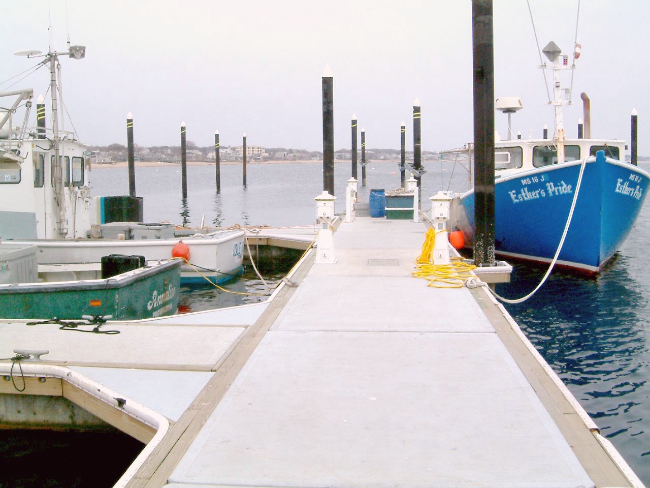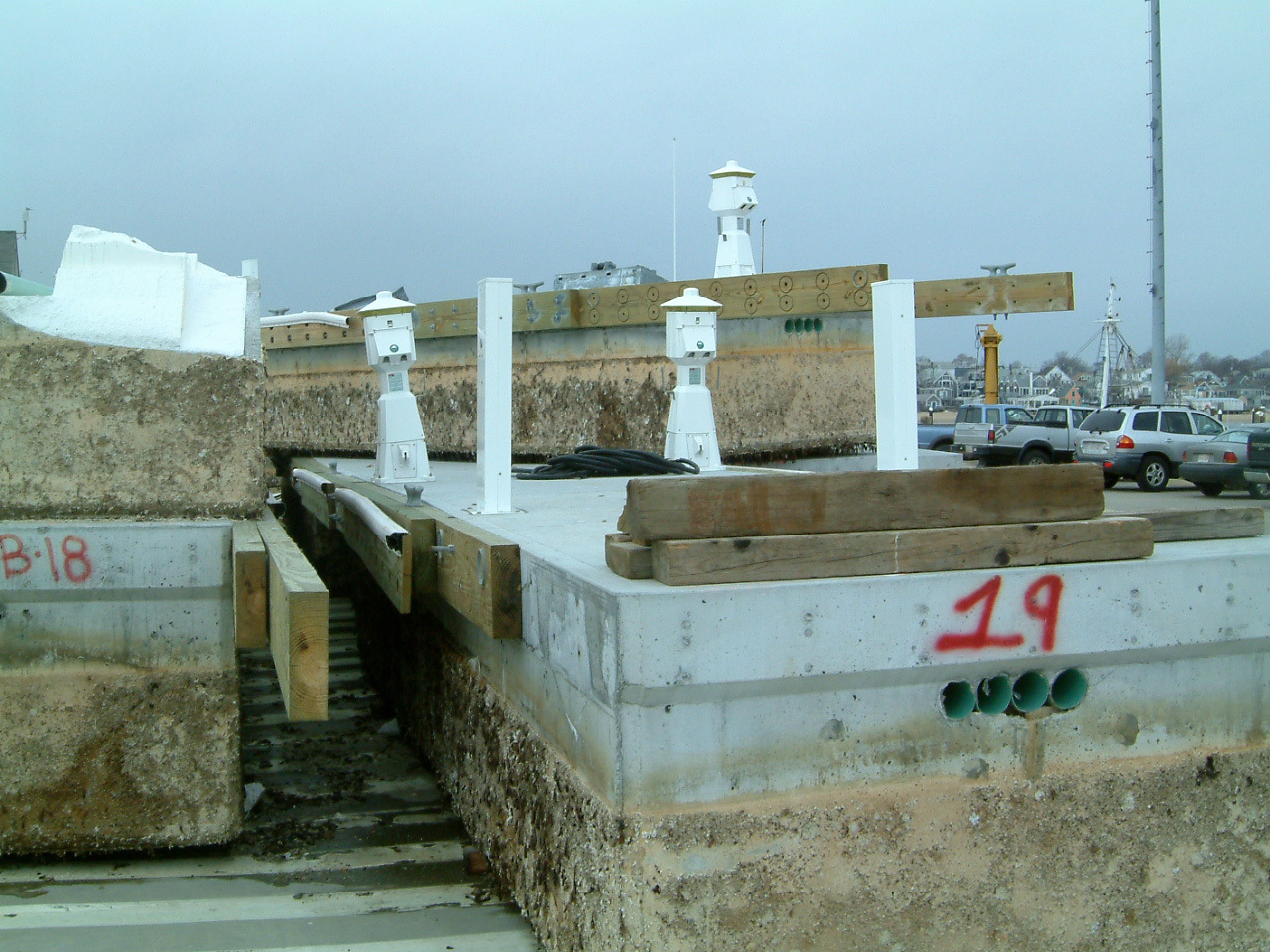 When the storm hit Provincetown Harbor, most of the finger piers broke away from the main dock. At MacMillian Pier, inspectors found cracks on the floats under the wood whalers and on the unreinforced side walls, and several floats fractured as workers tried to remove them from the water.