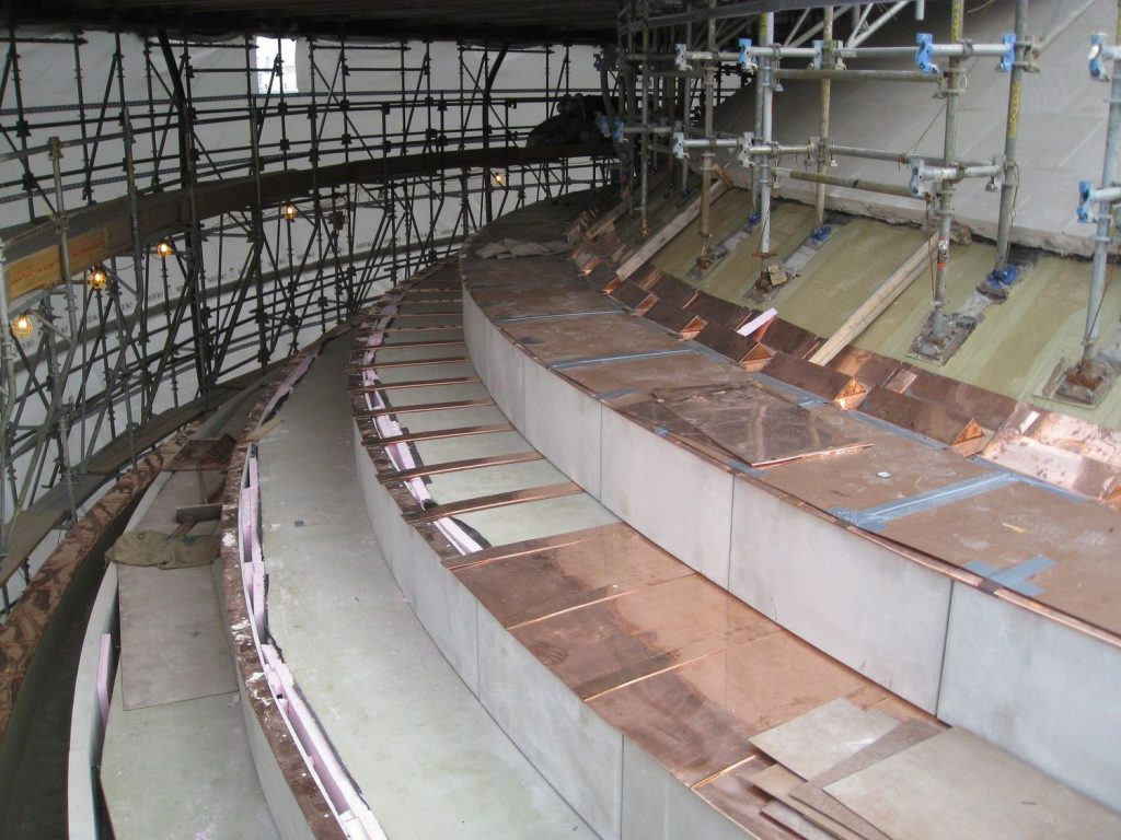 - Designed repairs to add continuous waterproofing over the stepped portion of the concrete dome, requiring removal of limestone and copper cladding