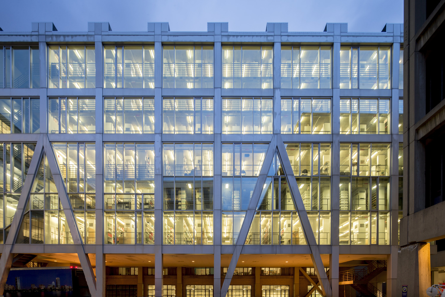 MIT presented Schwartz/Silver Architects with the challenge of providing an addition to the Rotch Library. The only available space was a site within the principal service corridor requiring ground-level clearance of 17 ft to maintain unimpeded truck access. MIT set height restrictions that dictated the new building could not be taller than the adjacent School of Architecture building and required six levels of book stacks within the vertical dimension of the existing four-story building. SGH was the structural engineer for the 17,500 sq ft addition.