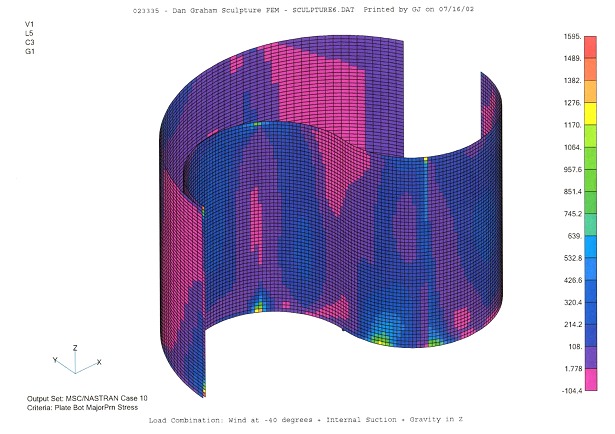 - Performed finite element analyses of the glass and the supporting stainless steel to compute stresses in the sculpture