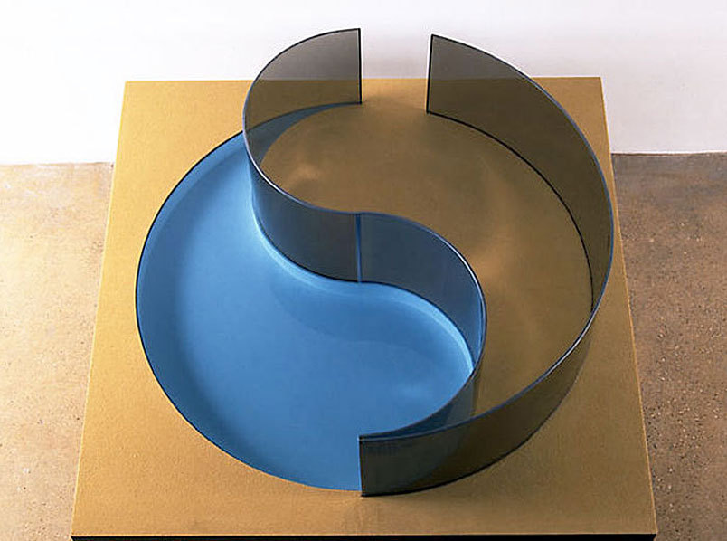 The Yin/Yang Pavilion, a sculpture designed by Dan Graham, is located on the second floor terrace of Simmons Hall at MIT. The curving sculpture, constructed from 7 ft high panels of laminated two-way mirror glass, rests in a reflecting pool on one side and gravel on the other. As a requirement of their contract, the steel fabricator called upon SGH to provide structural engineering services for the sculpture.