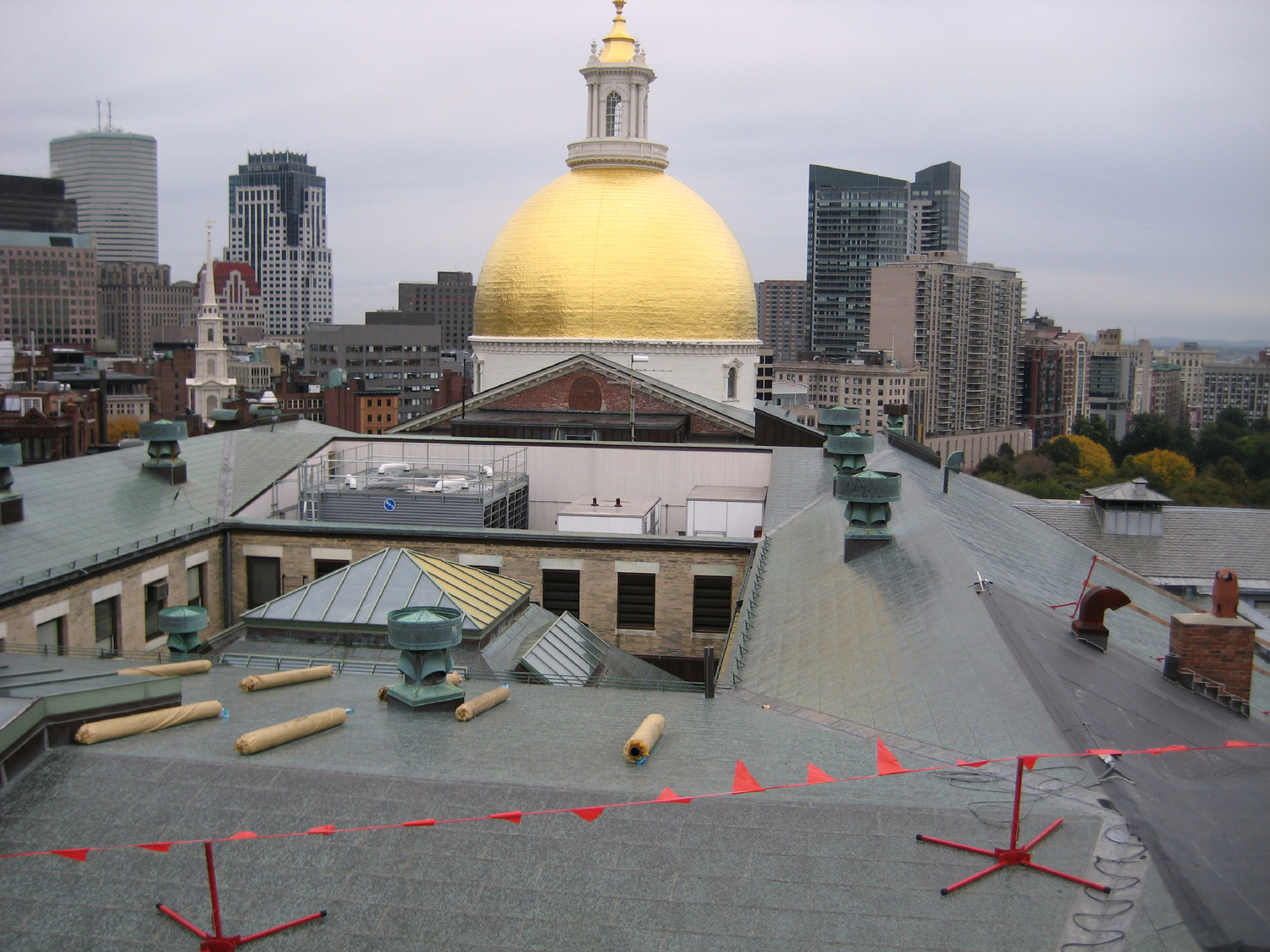 The State House was constructed in three phases. The original Federal/Georgian building was designed by Charles Bulfinch and completed in 1798. In 1896, a renaissance revival Annex with yellow brick and marble features was added onto the back of the building, and in 1914 two marble-clad wings were added to either side. SGH investigated roof leakage and designed repairs.