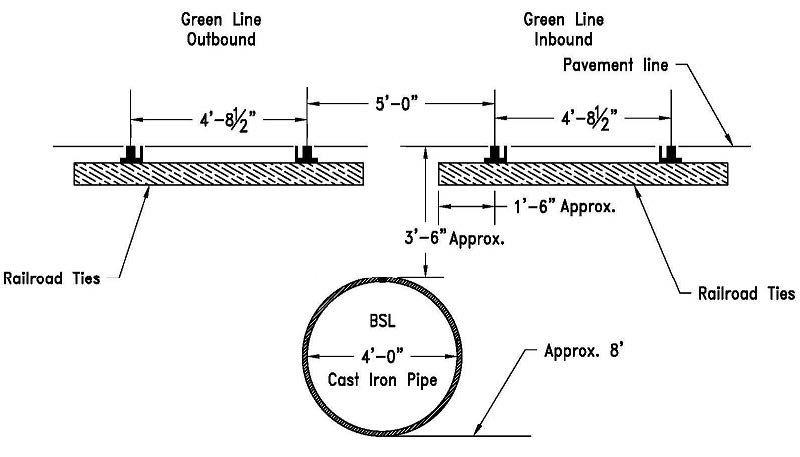 Constructed in the 1870s, the Beacon Street Line carries water under the MBTA Green Line tracks in the busy Brookline neighborhood. Massachusetts Water Resources Authority (MWRA) identified a leak in the 48-in. dia. cast iron pipe below the train tracks and needed to make repairs. SGH evaluated the pipe to determine if workers could safely enter, designed the repair, and provided engineering support during construction.