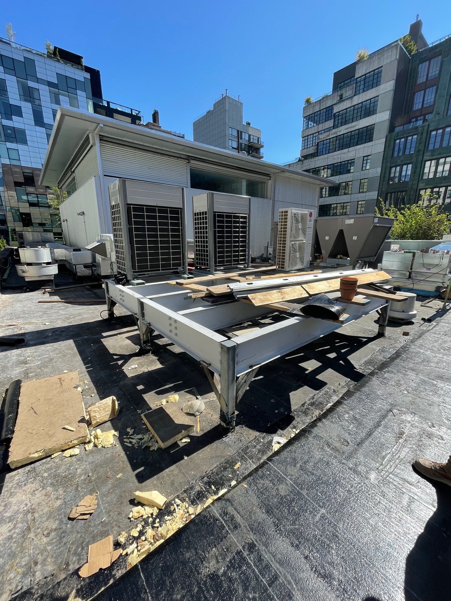 • Coordinating the dunnage’s location and geometry with the mechanical engineering consultant to keep the additional loads on the roof framing within the threshold of the prescriptive compliance method