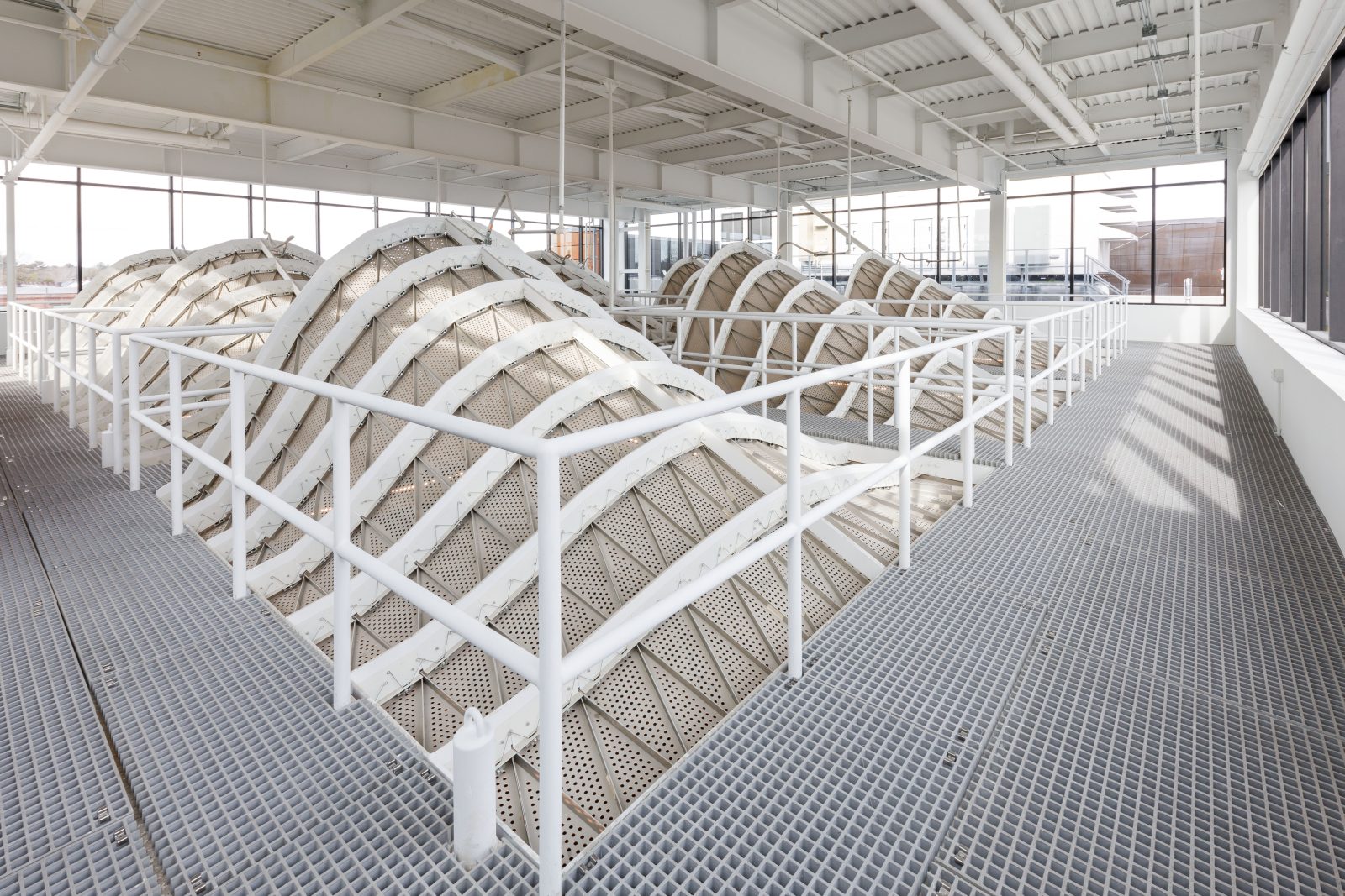 As structural engineer, SGH designed the steel-framed structure with exposed braced frames and deep pile foundations, as well as a feature stair and suspended catwalks supporting custom light scoops that filter daylight from the full-height clerestory into open workspaces. Liquefiable soils, uncommon for a New England site, required careful consideration to ensure pile stability during a seismic event.