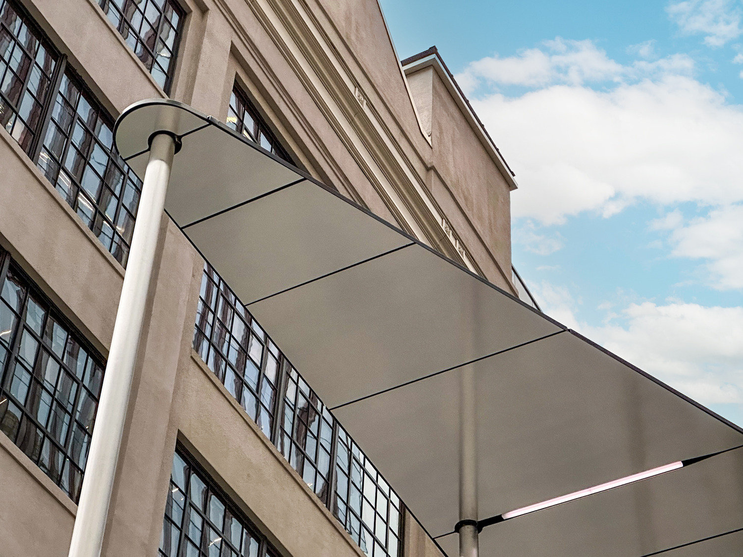 - Designing the FRP canopy structure on slender steel columns with strategically located bulkheads to stiffen the roof