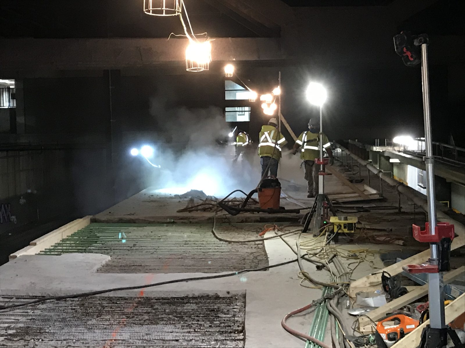 - Correlating the most severely damaged areas to leakage through an expansion joint in the elevated roadway above the station