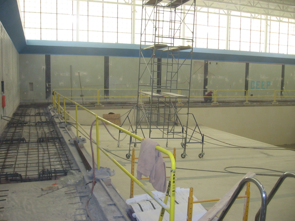 The swimming pool at Medford High School was constructed in 1970 and exhibited spalling, staining, leakage, and exposed corroded reinforcing bars on the underside of the pool deck; corrosion of the pool piping and pump components; and staining of the pool’s deck and wall tiles. SGH assessed the condition of the pool to help Medford High School budget for repairs and subsequently developed and oversaw a rehabilitation program.
