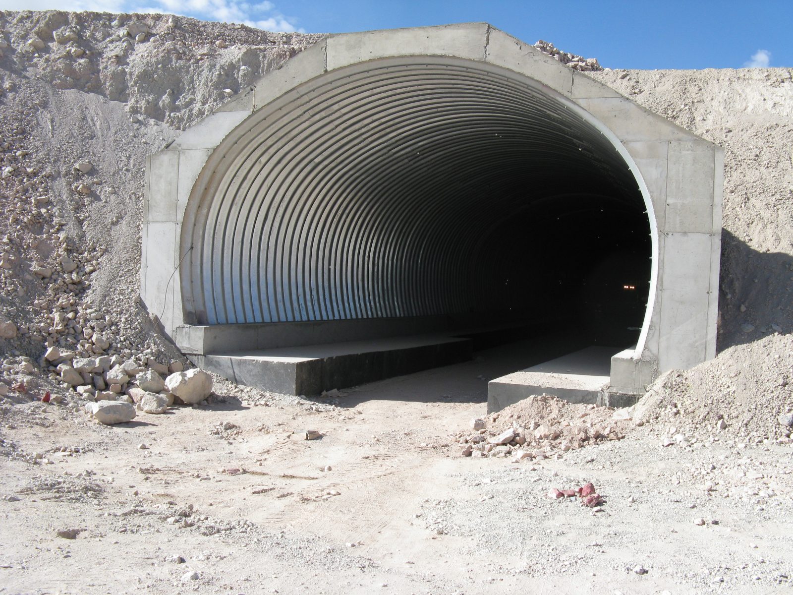 Expansion of the Minera Escondida copper mine included constructing a corrugated steel structural plate arch tunnel. The tunnel acts as a buried bridge to carry a haul road over the mine’s conveyor system. During construction of the embankment, the tunnel experienced differential settlement along the length and across the span. On behalf of the contractor, SGH evaluated distress in the tunnel structure and its reinforced concrete footings, and designed repairs.