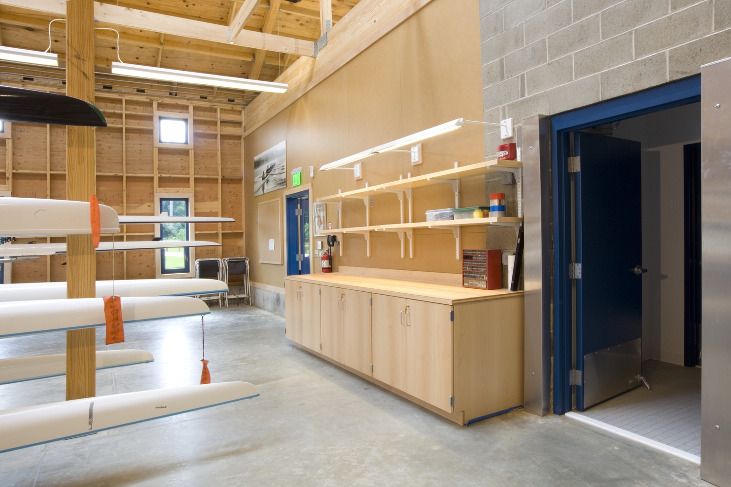 - Designed the timber-framed superstructure to allow for two large, column-free, boat storage bays and support for future vertical expansion, including an elevator and storage mezzanine