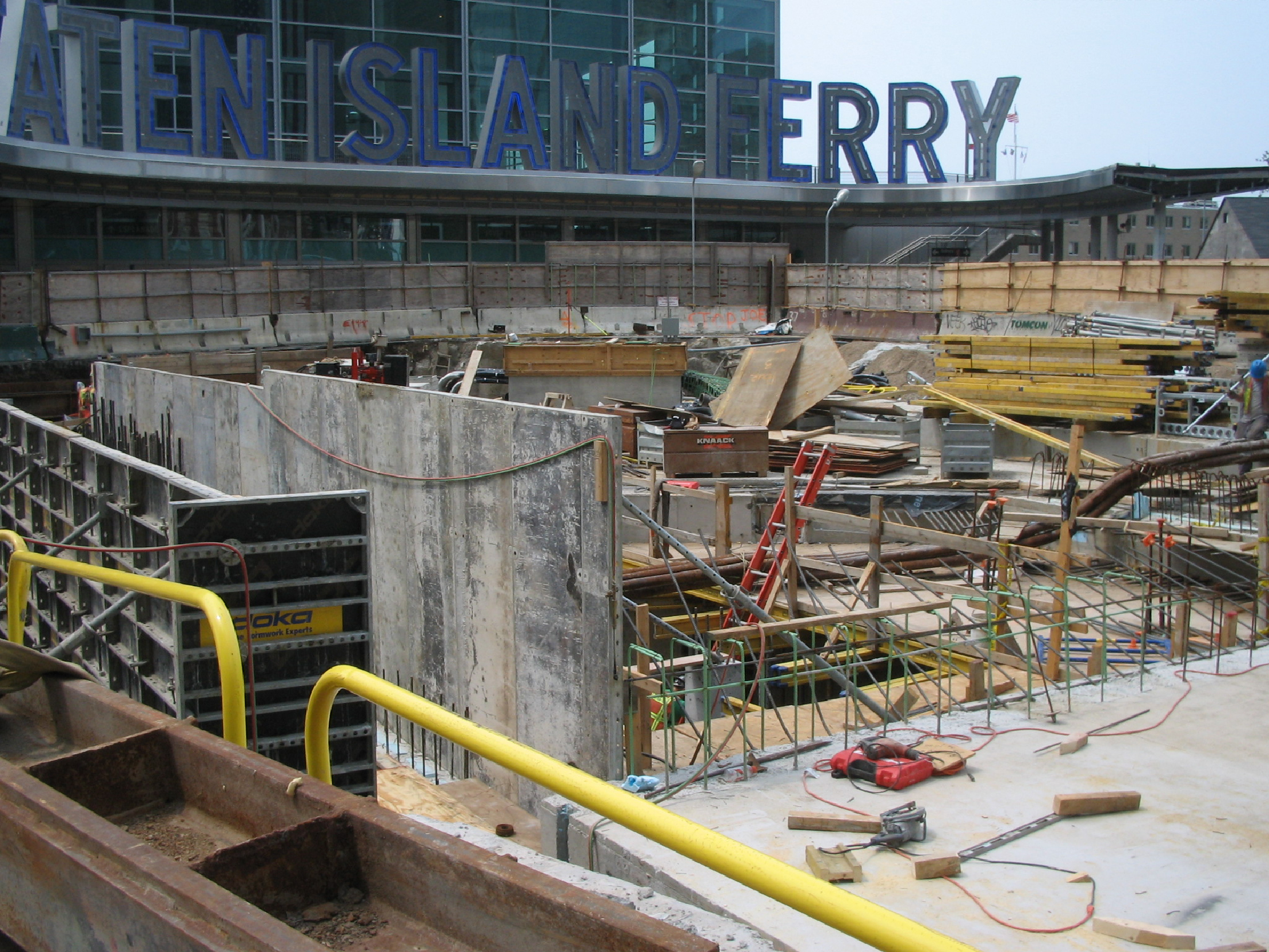 - Observed ongoing waterproofing installation and grout injection of cracks