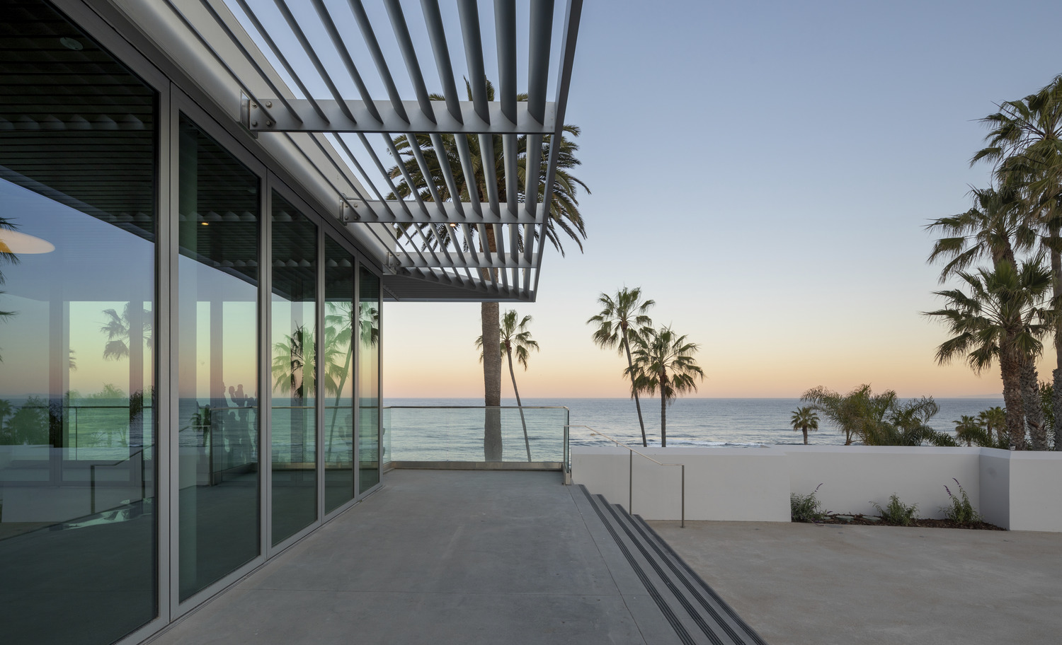 • Exterior wall assemblies, featuring exposed cast-in-place concrete, travertine panels, and aluminum sunshades