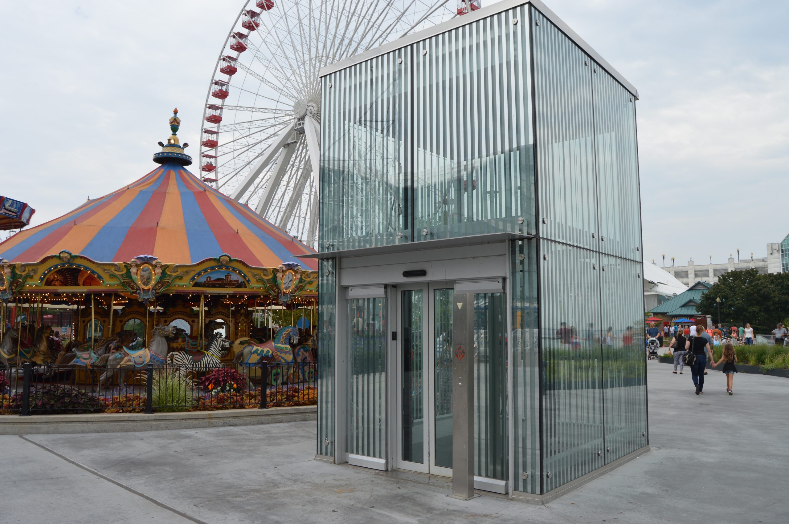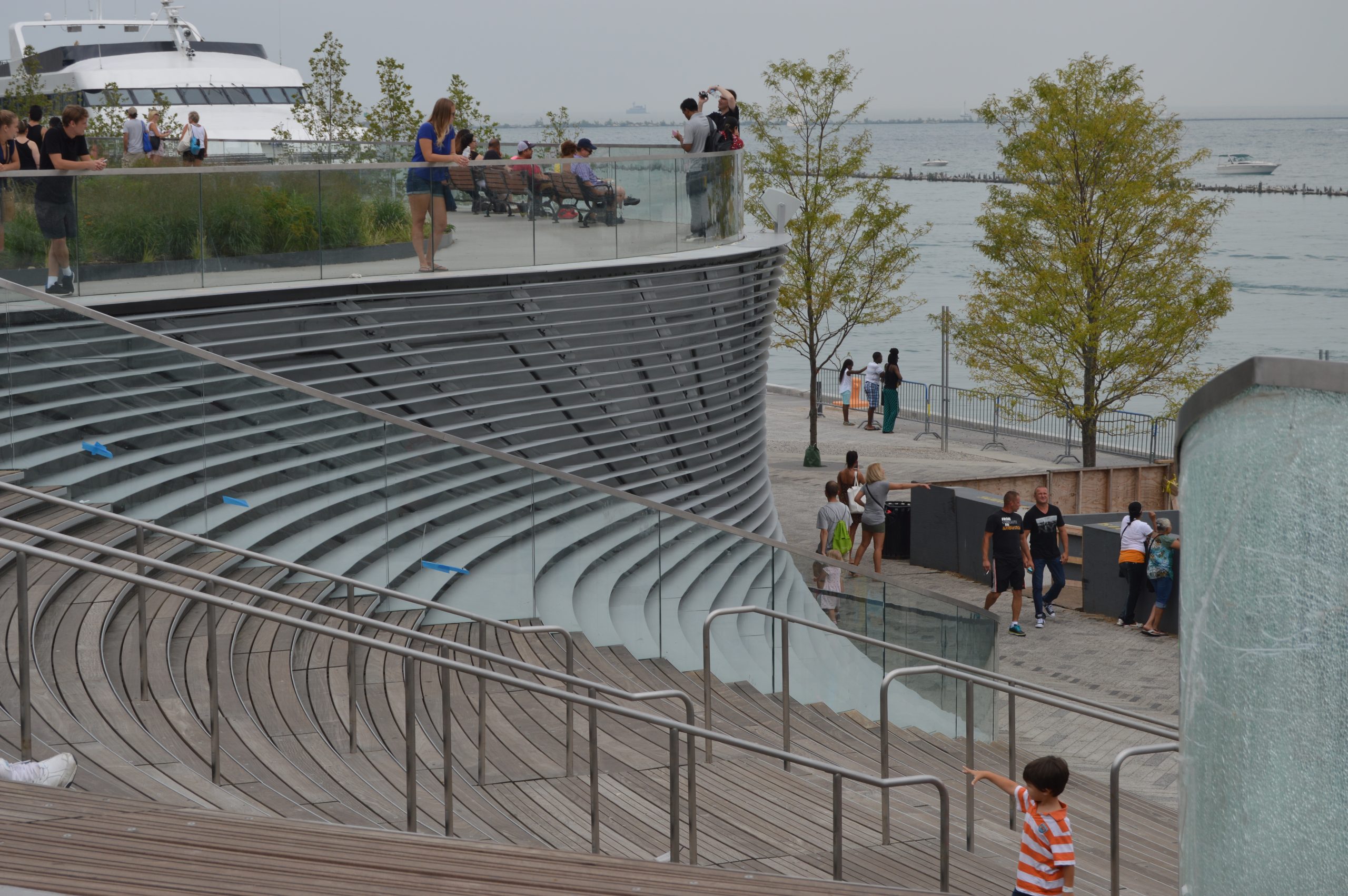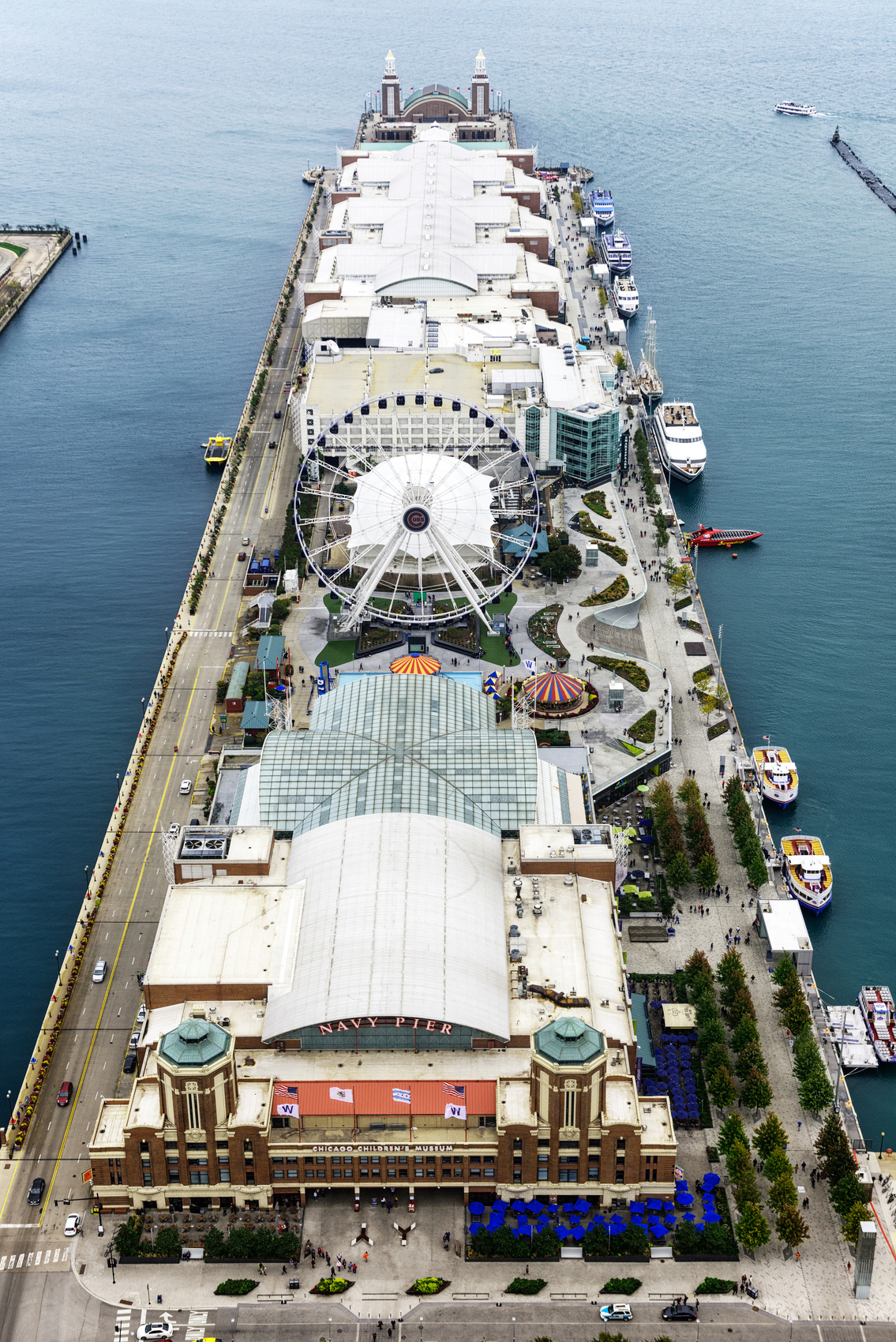 As part of a design competition, the James Corner Field Operations (JCFO) Team was selected to redesign the 3,000 ft long Navy Pier. The competition, spurred by the approaching 100th anniversary of the pier in 2016, set a goal to expand and reinvigorate the Chicago landmark. The project includes the addition of various new structures on the pier, including an Information Tower, Wave Wall and Stair, Lake Pavilions, and glass-enclosed elevators.