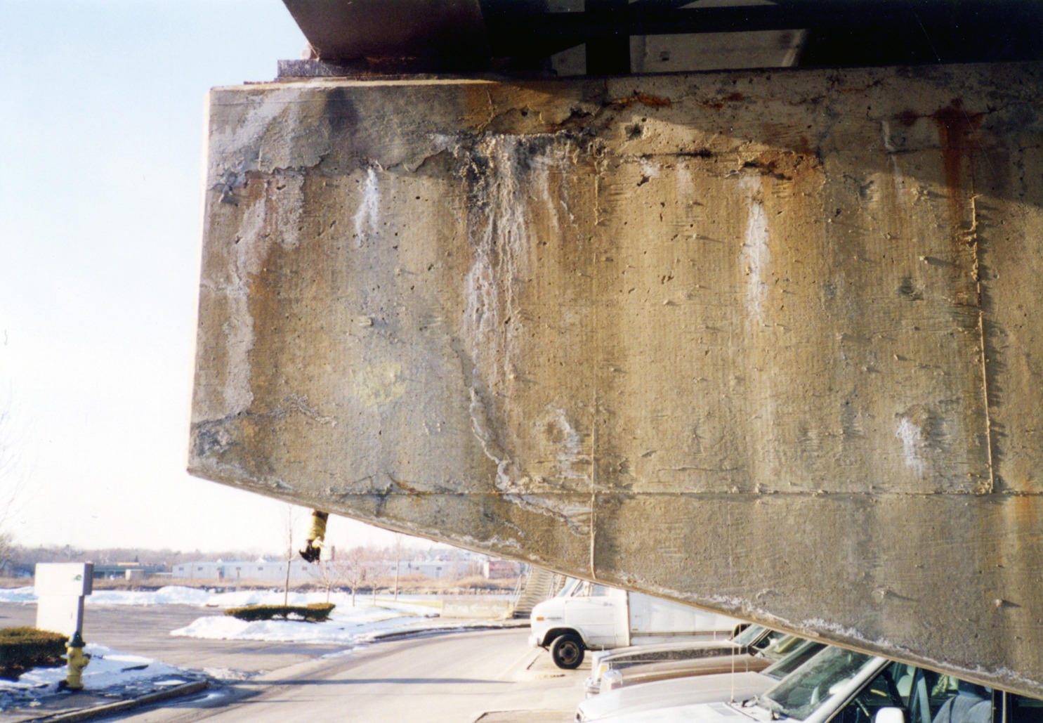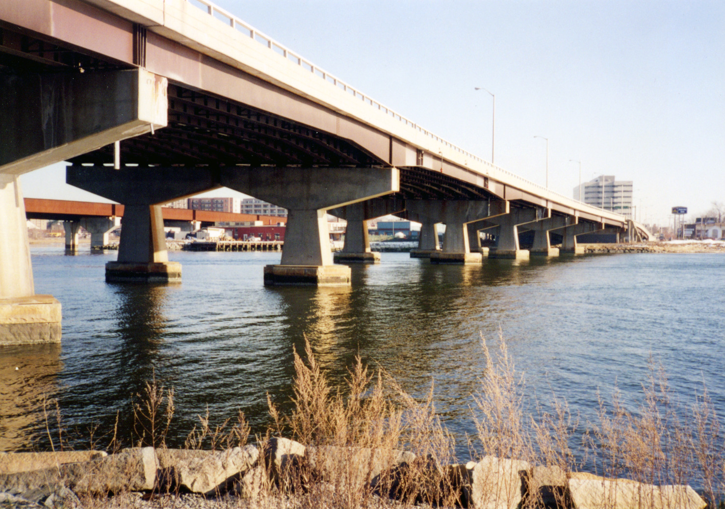 Opened in 1971, Neponset River Bridge carries Morrissey Boulevard traffic over Neponset River. The superstructure consists of steel plate girders and cover-plated steel stringers supporting a 7.5 in. thick reinforced concrete deck. The girders span 108 ft, with shorter spans in the curved portion of the bridge. Nineteen twin hammerhead piers and five twin wall piers support the superstructure. In a routine inspection of the Neponset River Bridge, Metropolitan District Commission personnel found cracks in several of the piers. A subsequent engineering study found that the cracks were due to over-stresses in the flexural steel and abrupt termination of flexural steel in a tension zone.