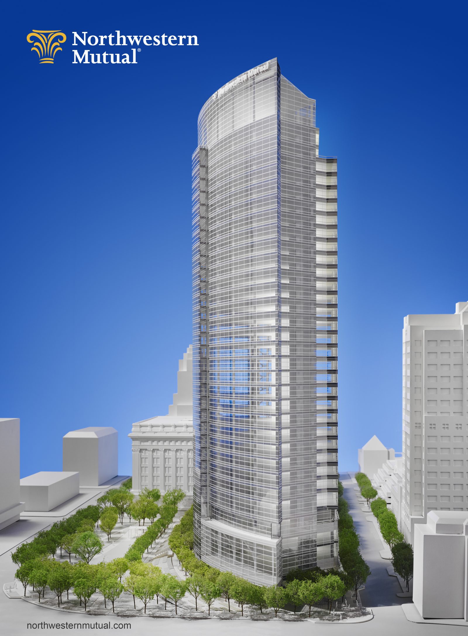 The 1.1 million sq ft Northwestern Mutual Tower in downtown Milwaukee is a 550 ft, 32-story skyscraper constructed by the joint venture team of Gilbane Building Company and CG Schmidt (CGS). The building is founded on a 3 ft to 10 ft thick mat foundation, which was cast at the end of March when outdoor temperatures hovered around freezing. SGH assisted the construction team by analyzing the mass concrete mix design, evaluating placement conditions, and developing a cooling system that allowed CGS to successfully place the mass concrete mat foundation.
