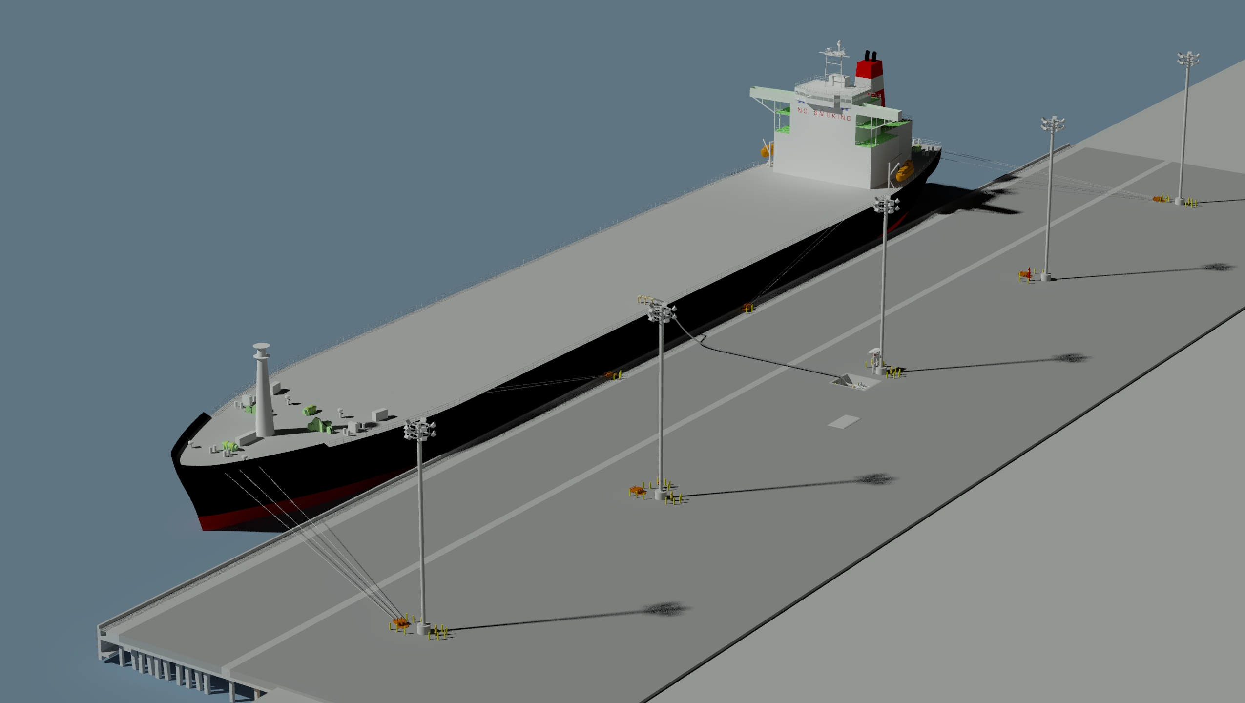 • A MOTEMS-compliant fire suppression system that is resilient to cargo handling operations and heavy equipment operating on the wharf
