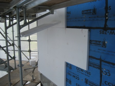 • Refinishing of stucco over concrete masonry walls to address water infiltration through building walls near grade