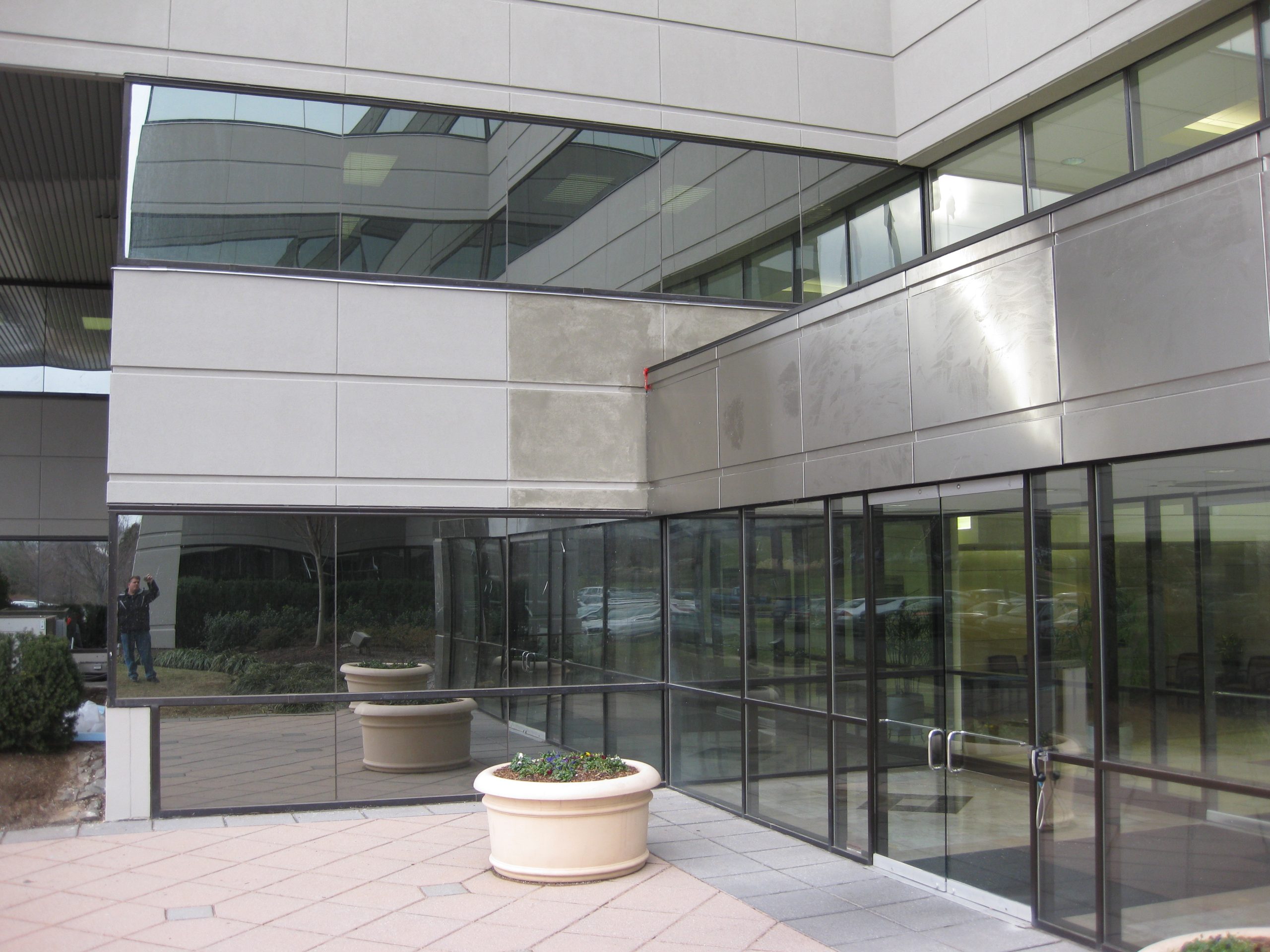 • Reclad of the vestibule with stainless steel metal panels for updated appearance at front of building