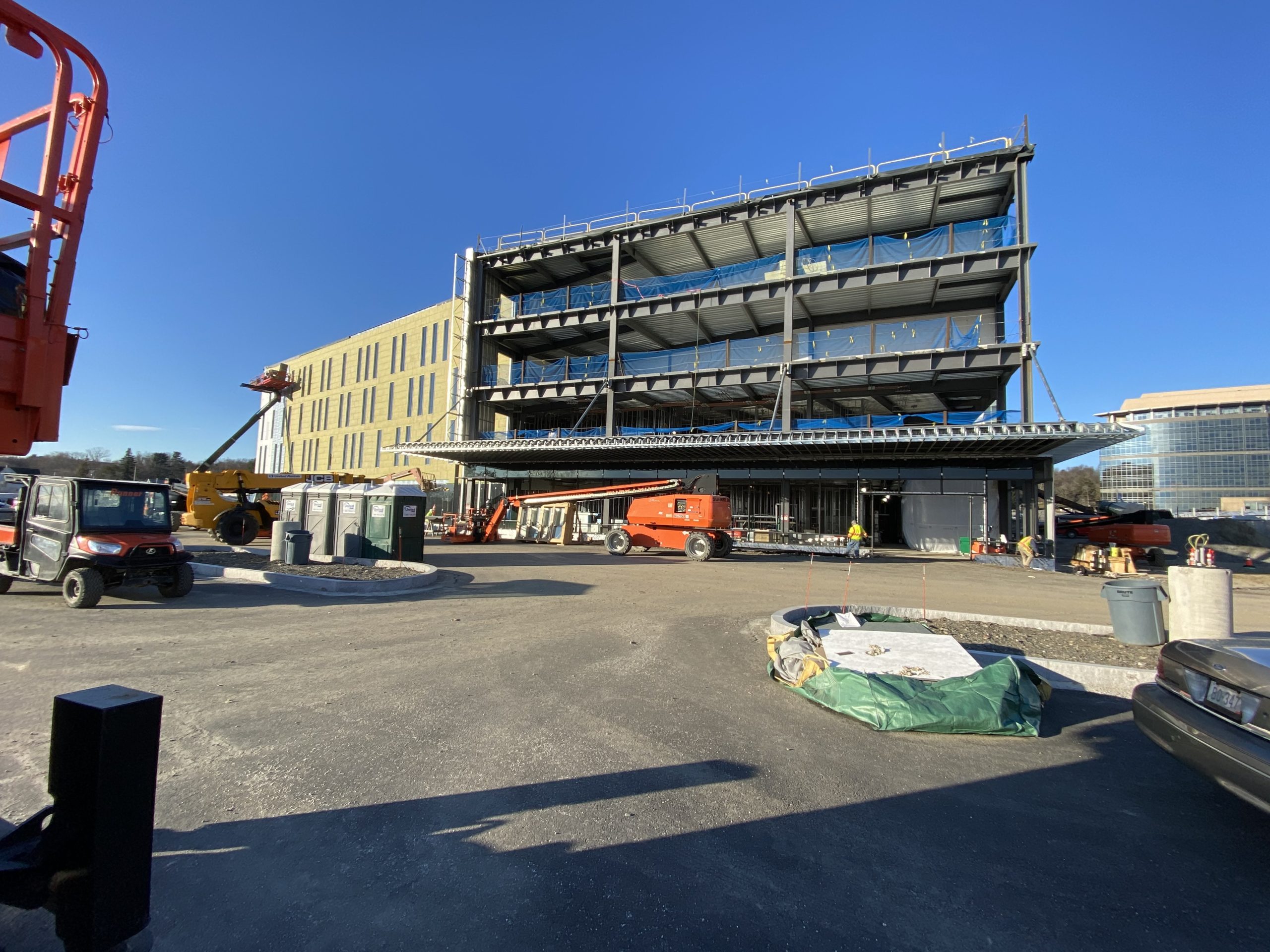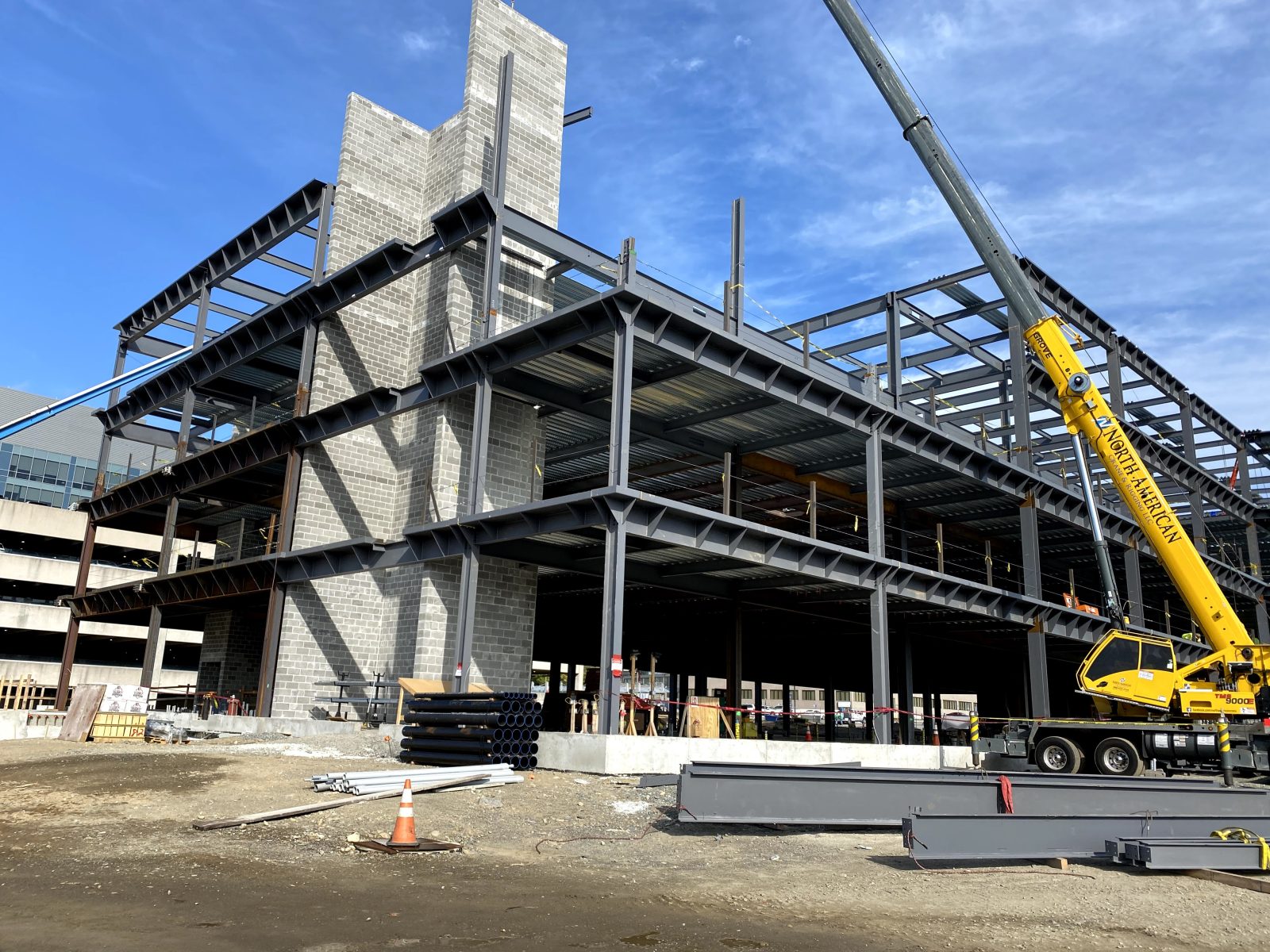 - A four-story, composite steel-framed superstructure with framing designed to support deflection-sensitive medical equipment in certain areas