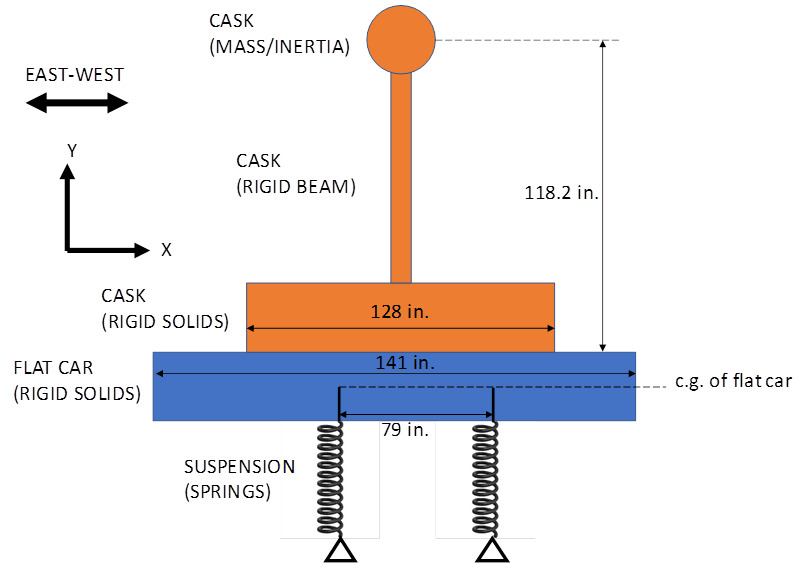 - Using LS-DYNA to model the cask and the rail car as rigid bodies with mass and geometry and account for the flexibility of the rail car suspension