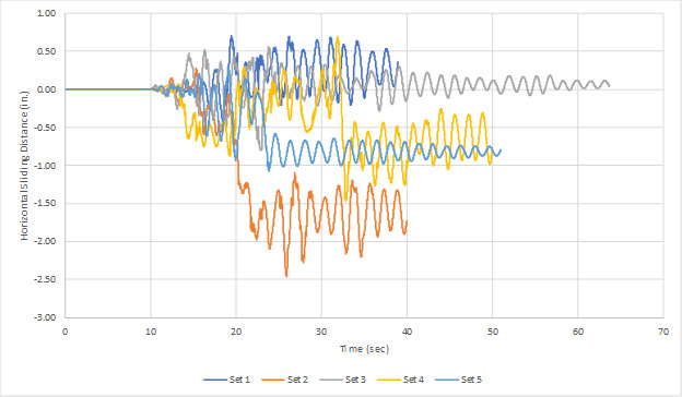 - Determining the maximum cask sliding distance and rocking angle for each set of time histories