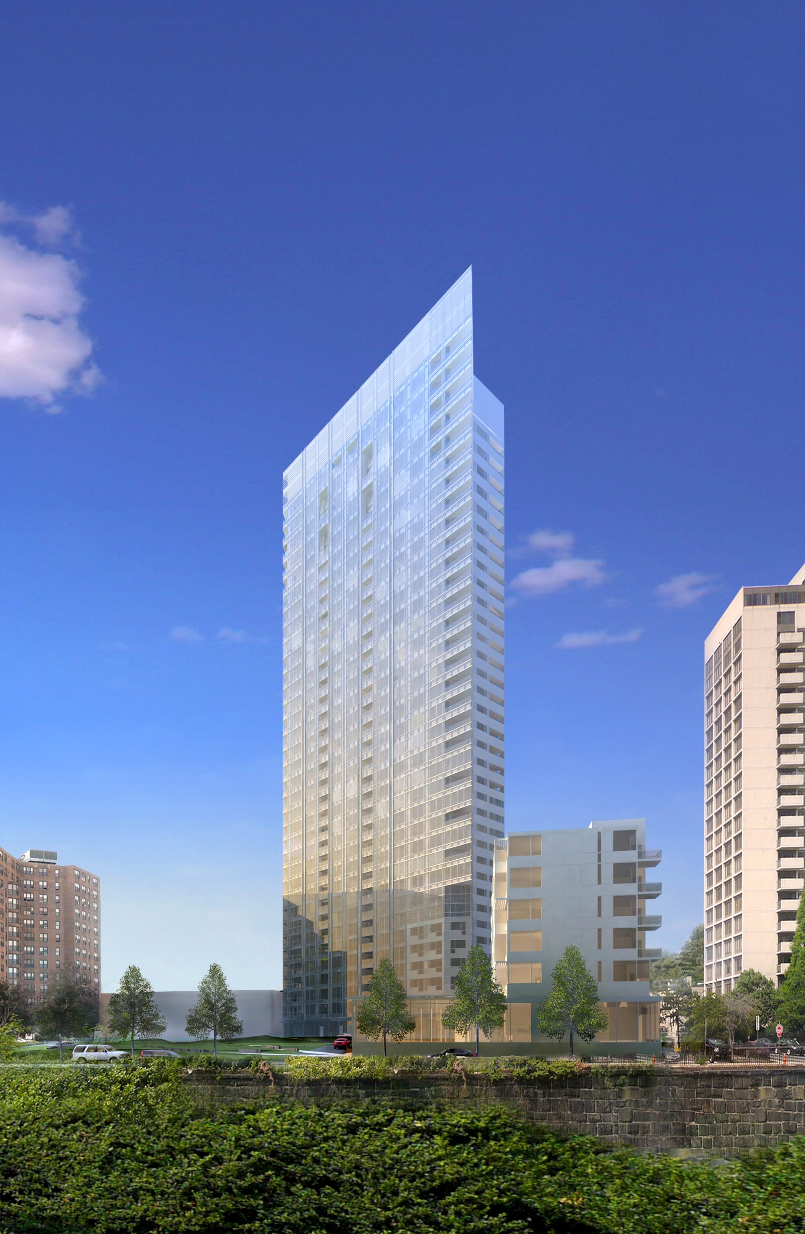 The sixteen-story building includes more than 200 apartments, below-grade parking, ground-level commercial space, and a rooftop amenity deck with a pool. SGH consulted on the building enclosure design for the project.