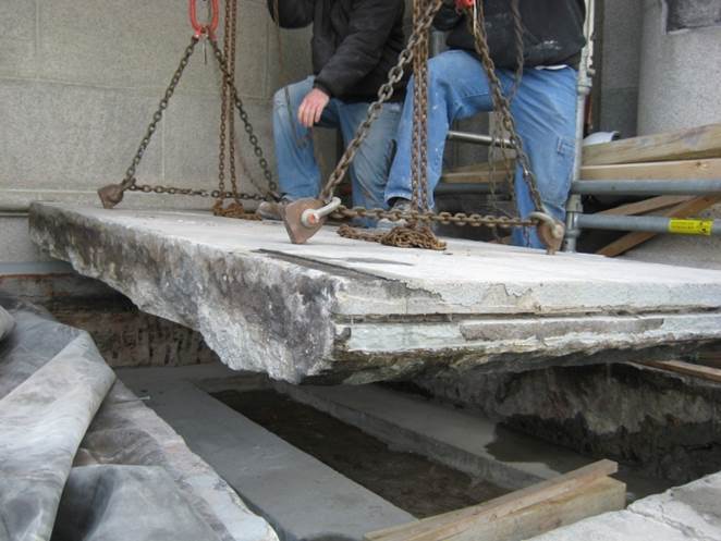 SGH designed comprehensive repairs to address leakage, which included reconstruction of the peristyle deck masonry. To address the masonry deterioration and resulting displacement, our solution incorporated concealed concrete beams and curbs that together served to support the granite pavers, while providing a substrate for anchoring the balustrades, and copings. The reconstruction involved lifting, storing, and resetting the existing granite pavers on the new concrete curbs to allow air movement under the pavers, which promotes drying of the saturated brick masonry below.