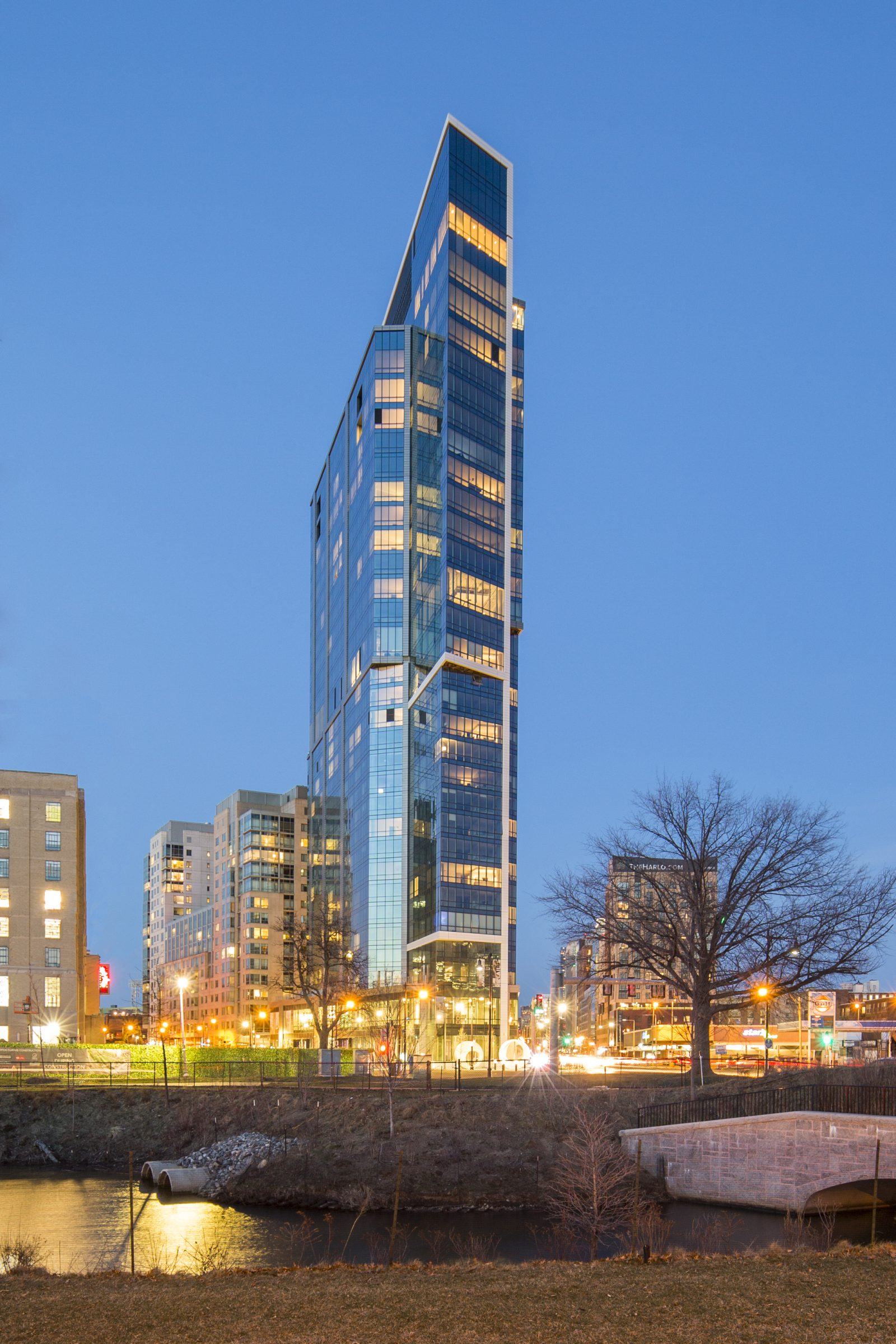 At its topping out, the 340 ft Pierce Boston became the tallest building in the Fenway neighborhood. The thirty-story tower includes 109 condominiums, 240 apartments, and ground-level retail. The building offers residents many amenities, including a rooftop deck with a pool, hot tub, and private sky cabanas; a fitness center; below-grade parking; and full-height curtain walls offering panoramic views of Boston and the surrounding areas. SGH consulted on the building enclosure design.