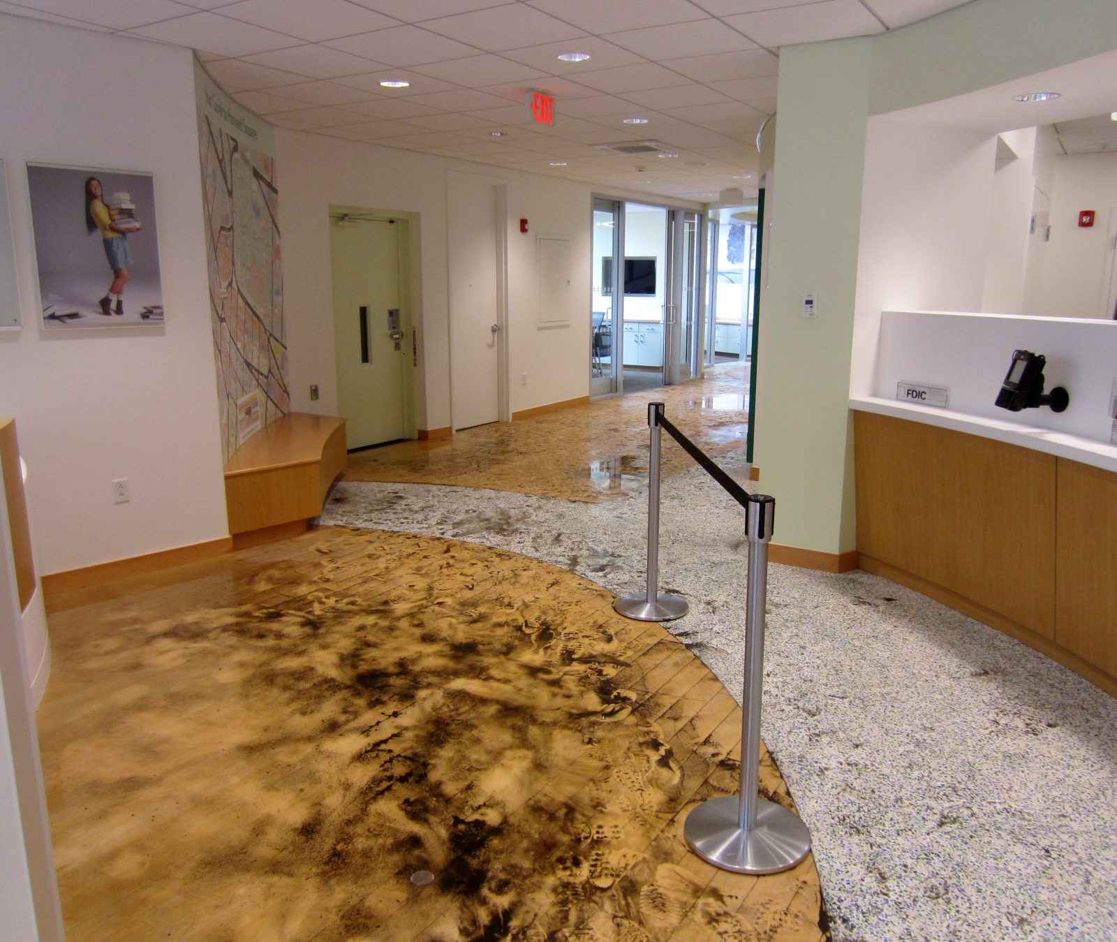 - New waterproofing behind the existing brick veneer and on new concrete walls and floor surfaces