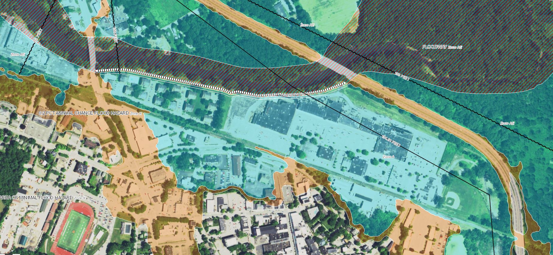 - Examined current and historical Federal Emergency Management Agency Flood Insurance Rate Maps and Flood Insurance Studies to understand flooding at the sites. We considered the relative magnitude of various flood events (100-year, 500-year, etc.), flood zone extent, and challenges associated with site-specific features, such as protective levees.
