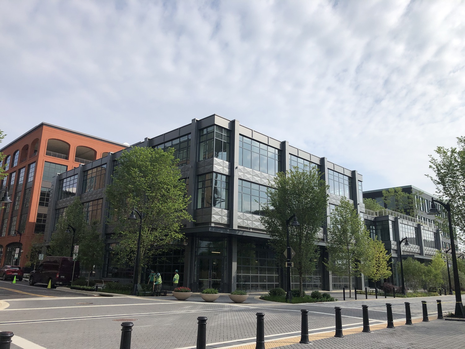 - Building 1 is the largest building and has a brick-clad warehouse aesthetic, six-levels of office space, and a colonnade at the public level