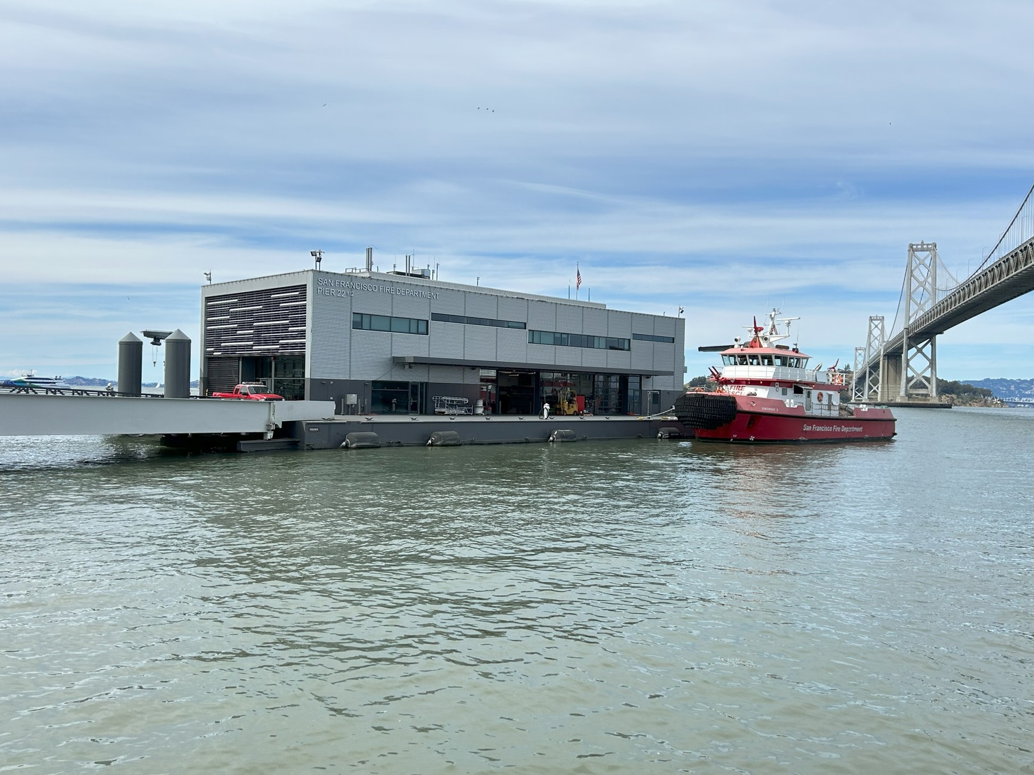 Located behind the city’s oldest fire station at Pier 221/2, the new fireboat station is a two-story structure constructed on a steel float that provides firefighters with a marine emergency operations center and better access to their fireboats. The float is anchored with piles and accessed from the landside via a ramp connected to a new pile-supported pier. The building, which houses full-time fire department personnel, is designed to rise and fall with the tide and future sea level changes. SGH consulted on the building enclosure design for the project.