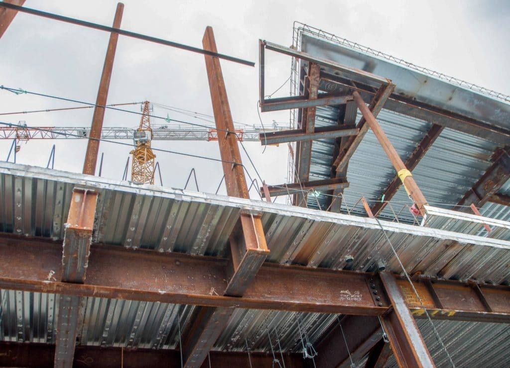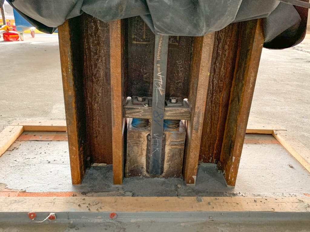 - Boosting the gravity load carrying capacity of third-floor beams to support assembly loads by welding headed studs to the top flanges to enable composite action
