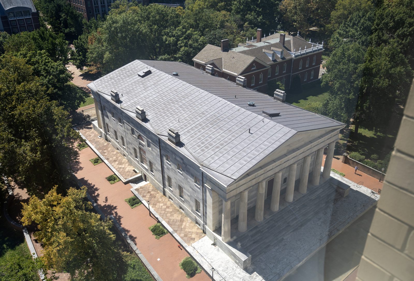 The Second Bank of the United States served as a Federal depository from 1816 until 1832, when it became a focal point of debates over national banking practices. Designed by William Strickland in the Greek Revival style, the structure served as the city’s customs house until 1930 when a new customs house was built. Today, the building is owned by the National Park Service (NPS) and houses a portrait gallery with works largely created by Charles Wilson Peale. It is designated as a National Historic Landmark and listed on the National Register of Historic Places. NPS undertook a project to rehabilitate the roof, exterior marble, and wood windows. SGH provided structural engineering services for the roof rehabilitation and consulted on the marble anchorage.
